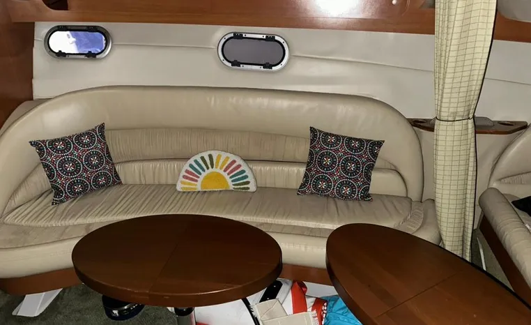 Freshwater / Great Lakes boat since new this vessel features Twin Volvo 8.1-litre Gi 375-hp Gas Inboard Engine's with 643-Hours showing on meters in bilge. Notable features include but are not limited to the following: Air-Conditioning & Heat (1-Unit), Head (Vacuflush) w/Vanity/Sink/Stall-Shower, Central Vacuum System, Kohler 7.3kw Generator (240-Hours), Windlass Anchor w/Forward Pedal-Controls, Complete Electronics Package (VHF Marine Radio, Depth/Speed, New Garmin Radar and New Garmin/GPS/Chartplotter, Raymarine Autopilot, Upgraded Fusion Stereo w/Premium Sound System w/iPod/MP3-Connection, Cockpit Wet Bar w/Sink/Ice-Maker/Refrigerator, Full Camper-Top Canvas Package w/Screens, Mooring Cover and MUCH more!