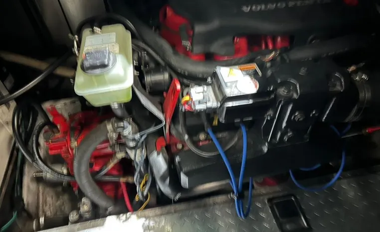 Freshwater / Great Lakes boat since new this vessel features Twin Volvo 8.1-litre Gi 375-hp Gas Inboard Engine's with 643-Hours showing on meters in bilge. Notable features include but are not limited to the following: Air-Conditioning & Heat (1-Unit), Head (Vacuflush) w/Vanity/Sink/Stall-Shower, Central Vacuum System, Kohler 7.3kw Generator (240-Hours), Windlass Anchor w/Forward Pedal-Controls, Complete Electronics Package (VHF Marine Radio, Depth/Speed, New Garmin Radar and New Garmin/GPS/Chartplotter, Raymarine Autopilot, Upgraded Fusion Stereo w/Premium Sound System w/iPod/MP3-Connection, Cockpit Wet Bar w/Sink/Ice-Maker/Refrigerator, Full Camper-Top Canvas Package w/Screens, Mooring Cover and MUCH more!