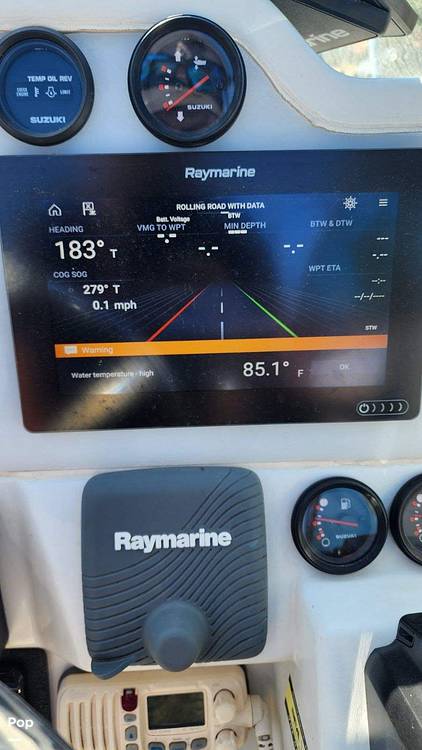 Power comes from twin 140 HP Suzuki outboards, offering reliable performance and exceptional control, thanks in part to the wide engine spacing--a design choice that gives this boat superior handling compared to most tightly-mounted twin setups. Storage is abundant, with oversized under-hatch compartments throughout, a built-in insulated cooler at the helm, and two massive forward cockpit hatches.
