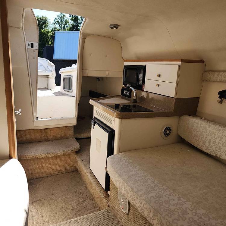 A great overnight boat! Fridge, range, microwave, and sink! Tons of storage!