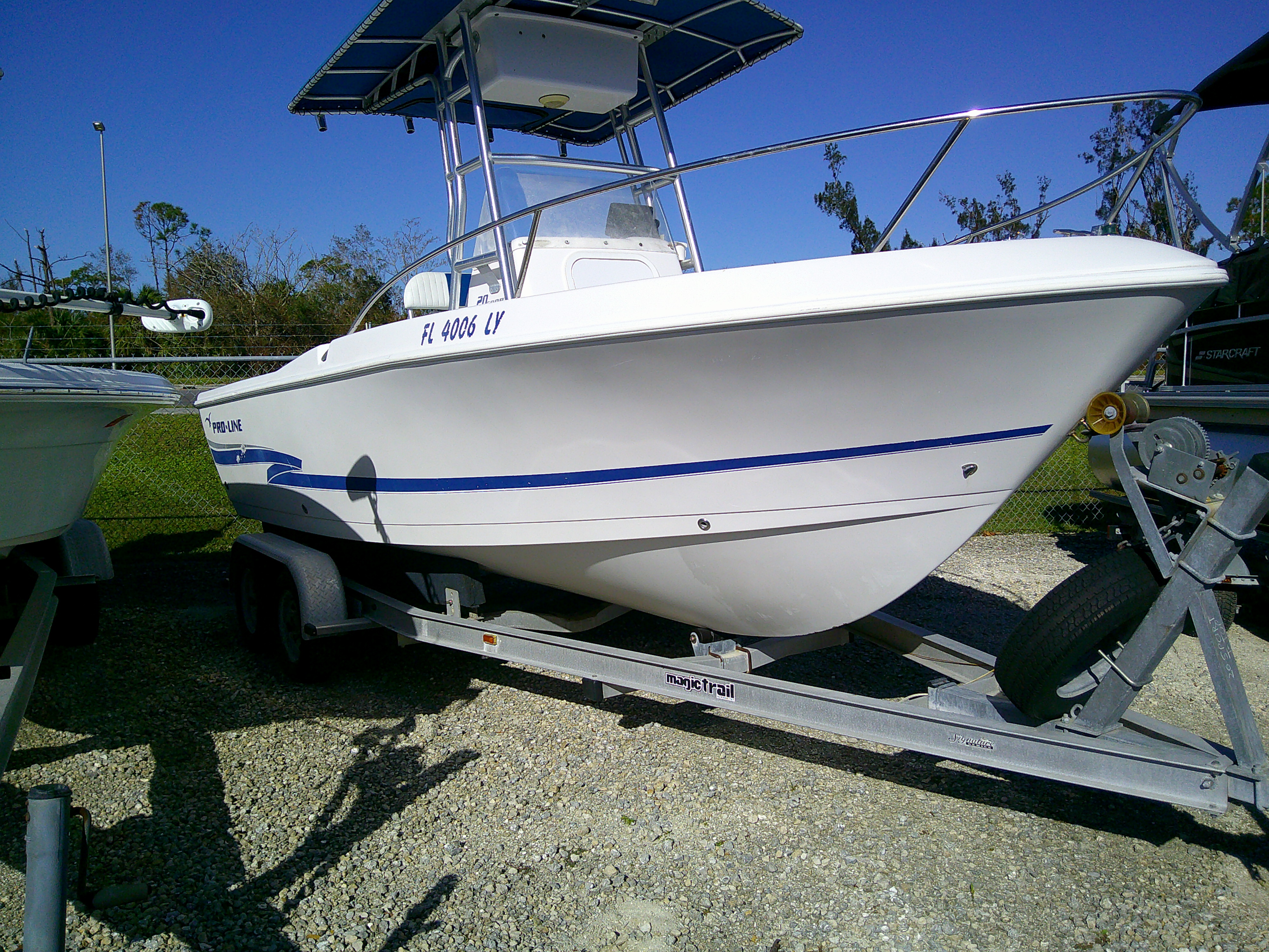 2002 Pro Line 22CC Center Console. T-Top w/ canvas and EBOX. New Garmin 94SV GPS/Fishfinder/Chartplotter. Hydraulic steering. Trailer is included. Motor was recently serviced. Please call for me information.