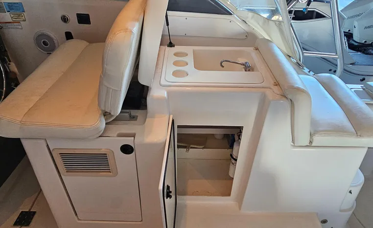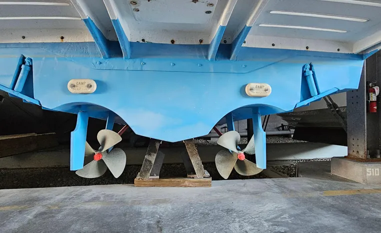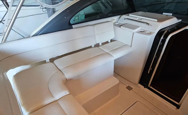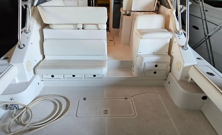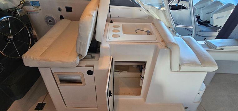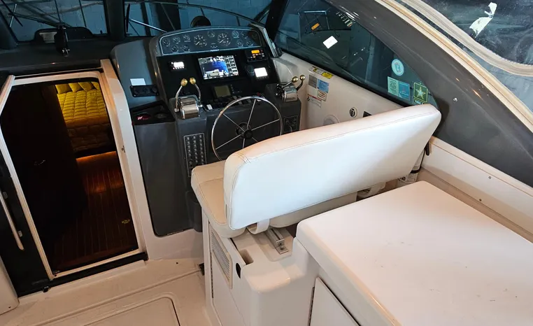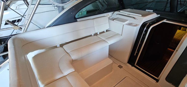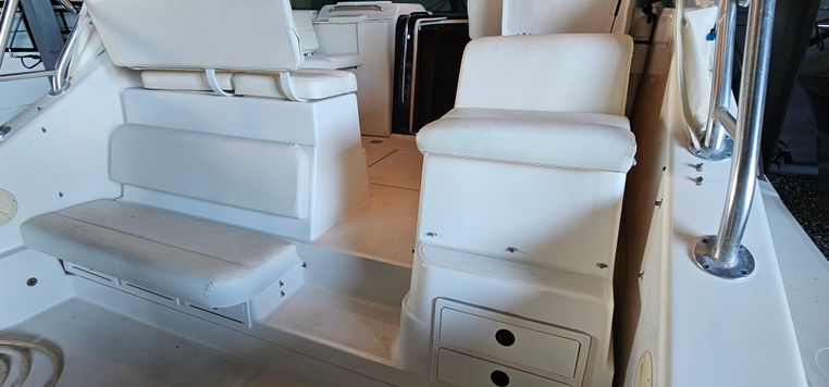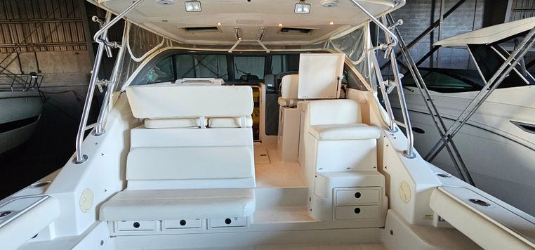Broker Notes: Inside Rack-Stored in Ft Myers Beach when not in use. Note August 2022 Engine's Serviced (1,000 hr service) including Cooling-System - Filters/Belts/Clamps etc., Garmin 7612 NEW 2016 w/Sounder, New Autopilot Display 2022, Bottom Painted July 2023, NEW Cutlas Bearings and Props 2023, Cockpit Interior NEW 2016. Located off-site and shown by appointment only.