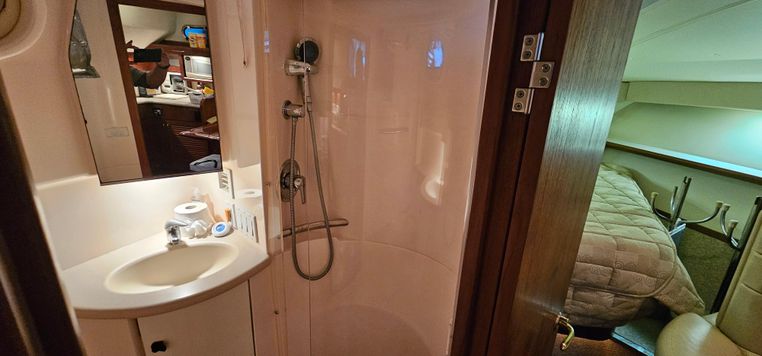 Features Twin Cummins 6CTA 8.3 450-hp Diamond-Series Diesel Engine's with 791 original hours (1,000 hour service completed August 2022.). Notable features include but are not limited to the following: Air-Conditioning & Heat 2-Units (Note Cockpit AC/Heat), Head (Vacuflush) w/Vanity/Sink/Stall-Shower, Windlass Anchor w/Forward-Controls, Onan 9.0 kw Generator (459-hrs), Electronics Package (iCOM VHF Marine Radio, Garmin 7612 Color / TouchScreen Radar w/GPS/Chartplotter/Sounder - Note Back-up Camera, Simrad Autopilot), Fusion Premium Sound-System, Glendenning Engine Sync., Swim-Platform w/Boarding-Ladder, and MUCH more!