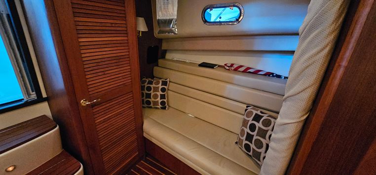 Features Twin Cummins 6CTA 8.3 450-hp Diamond-Series Diesel Engine's with 791 original hours (1,000 hour service completed August 2022.). Notable features include but are not limited to the following: Air-Conditioning & Heat 2-Units (Note Cockpit AC/Heat), Head (Vacuflush) w/Vanity/Sink/Stall-Shower, Windlass Anchor w/Forward-Controls, Onan 9.0 kw Generator (459-hrs), Electronics Package (iCOM VHF Marine Radio, Garmin 7612 Color / TouchScreen Radar w/GPS/Chartplotter/Sounder - Note Back-up Camera, Simrad Autopilot), Fusion Premium Sound-System, Glendenning Engine Sync., Swim-Platform w/Boarding-Ladder, and MUCH more!