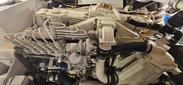 Features Twin Cummins 6CTA 8.3 450-hp Diamond-Series Diesel Engine's with 791 original hours (1,000 hour service completed August 2022.). Notable features include but are not limited to the following: Air-Conditioning & Heat 2-Units (Note Cockpit AC/Heat), Head (Vacuflush) w/Vanity/Sink/Stall-Shower, Windlass Anchor w/Forward-Controls, Onan 9.0 kw Generator (459-hrs), Electronics Package (iCOM VHF Marine Radio, Garmin 7612 Color / TouchScreen Radar w/GPS/Chartplotter/Sounder - Note Back-up Camera, Simrad Autopilot), Fusion Premium Sound-System, Glendenning Engine Sync., Swim-Platform w/Boarding-Ladder, and MUCH more!