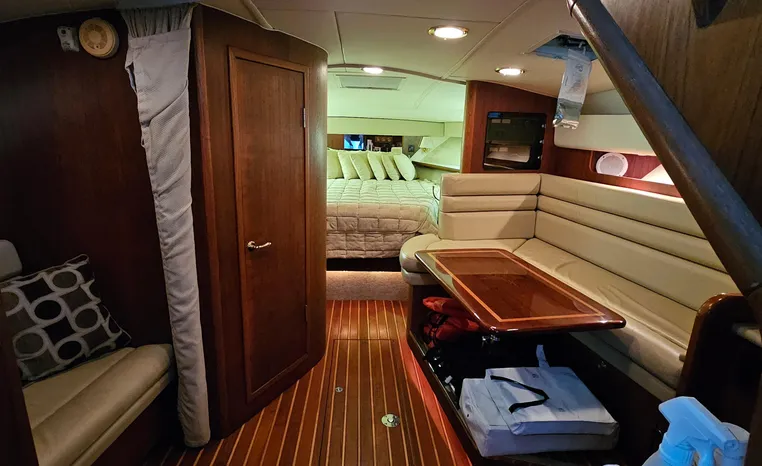 Features Twin Cummins 6CTA 8.3 450-hp Diamond-Series Diesel Engine's with 791 original hours (1,000 hour service completed August 2022.). Notable features include but are not limited to the following: Air-Conditioning & Heat 2-Units (Note Cockpit AC/Heat), Head (Vacuflush) w/Vanity/Sink/Stall-Shower, Windlass Anchor w/Forward-Controls, Onan 9.0 kw Generator (459-hrs), Electronics Package (iCOM VHF Marine Radio, Garmin 7612 Color / TouchScreen Radar w/GPS/Chartplotter/Sounder - Note Back-up Camera, Simrad Autopilot), Fusion Premium Sound-System, Glendenning Engine Sync., Swim-Platform w/Boarding-Ladder, and MUCH more!