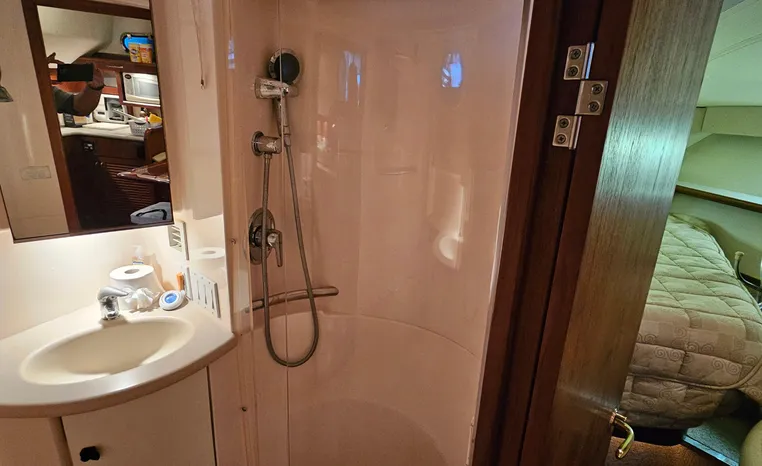Features Twin Cummins 6CTA 8.3 450-hp Diamond-Series Diesel Engine's with 791 original hours (1,000 hour service completed August 2022.). Notable features include but are not limited to the following: Air-Conditioning & Heat 2-Units (Note Cockpit AC/Heat), Head (Vacuflush) w/Vanity/Sink/Stall-Shower, Windlass Anchor w/Forward-Controls, Onan 9.0 kw Generator (459-hrs), Electronics Package (iCOM VHF Marine Radio, Garmin 7612 Color / TouchScreen Radar w/GPS/Chartplotter/Sounder - Note Back-up Camera, Simrad Autopilot), Fusion Premium Sound-System, Glendenning Engine Sync., Swim-Platform w/Boarding-Ladder, and MUCH more!