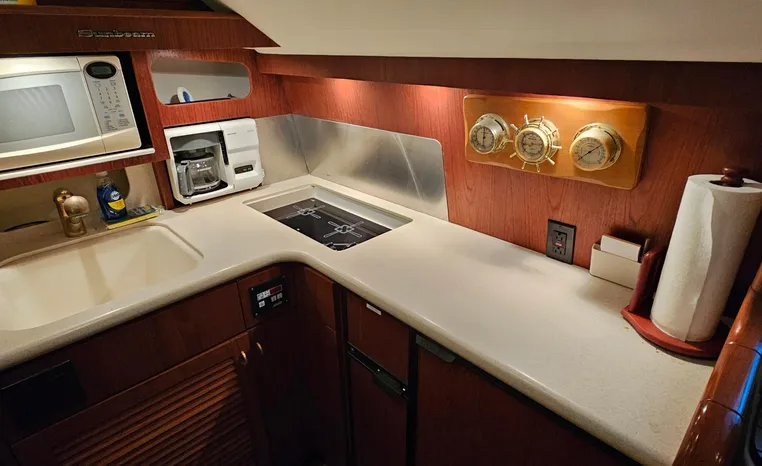Features Twin Cummins 6CTA 8.3 450-hp Diamond-Series Diesel Engine's with 791 original hours (1,000 hour service completed August 2022.). Notable features include but are not limited to the following: Air-Conditioning & Heat 2-Units (Note Cockpit AC/Heat), Head (Vacuflush) w/Vanity/Sink/Stall-Shower, Windlass Anchor w/Forward-Controls, Onan 9.0 kw Generator (459-hrs), Electronics Package (iCOM VHF Marine Radio, Garmin 7612 Color / TouchScreen Radar w/GPS/Chartplotter/Sounder - Note Back-up Camera, Simrad Autopilot), Fusion Premium Sound-System, Glendenning Engine Sync., Swim-Platform w/Boarding-Ladder, and MUCH more!