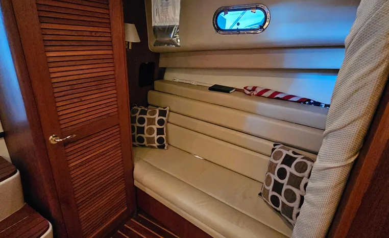 Features Twin Cummins 6CTA 8.3 450-hp Diamond-Series Diesel Engine's with 791 original hours (1,000 hour service completed August 2022.). Notable features include but are not limited to the following: Air-Conditioning & Heat 2-Units (Note Cockpit AC/Heat), Head (Vacuflush) w/Vanity/Sink/Stall-Shower, Windlass Anchor w/Forward-Controls, Onan 9.0 kw Generator (459-hrs), Electronics Package (iCOM VHF Marine Radio, Garmin 7612 Color / TouchScreen Radar w/GPS/Chartplotter/Sounder - Note Back-up Camera, Simrad Autopilot), Fusion Premium Sound-System, Glendenning Engine Sync., Swim-Platform w/Boarding-Ladder, and MUCH more!