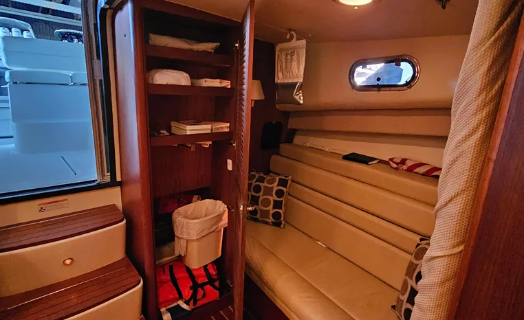 Features Twin Cummins 6CTA 8.3 450-hp Diamond-Series Diesel Engine's with 791 original hours (1,000 hour service completed August 2022.). Notable features include but are not limited to the following: Air-Conditioning & Heat 2-Units (Note Cockpit AC/Heat), Head (Vacuflush) w/Vanity/Sink/Stall-Shower, Windlass Anchor w/Forward-Controls, Onan 9.0 kw Generator (459-hrs), Electronics Package (iCOM VHF Marine Radio, Garmin 7612 Color / TouchScreen Radar w/GPS/Chartplotter/Sounder - Note Back-up Camera, Simrad Autopilot), Fusion Premium Sound-System, Glendenning Engine Sync., Swim-Platform w/Boarding-Ladder, and MUCH more!