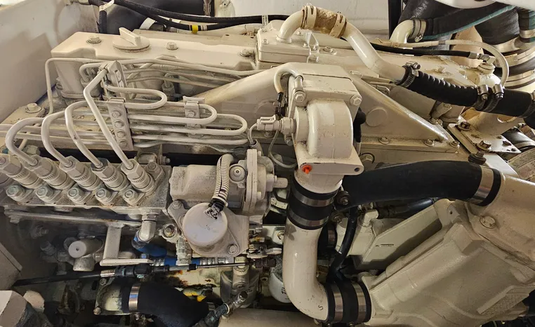 Features Twin Cummins 6CTA 8.3 450-hp Diamond-Series Diesel Engine's with 791 original hours (1,000 hour service completed August 2022.). Notable features include but are not limited to the following: Air-Conditioning & Heat 2-Units (Note Cockpit AC/Heat), Head (Vacuflush) w/Vanity/Sink/Stall-Shower, Windlass Anchor w/Forward-Controls, Onan 9.0 kw Generator (459-hrs), Electronics Package (iCOM VHF Marine Radio, Garmin 7612 Color / TouchScreen Radar w/GPS/Chartplotter/Sounder - Note Back-up Camera, Simrad Autopilot), Fusion Premium Sound-System, Glendenning Engine Sync., Swim-Platform w/Boarding-Ladder, and MUCH more!
