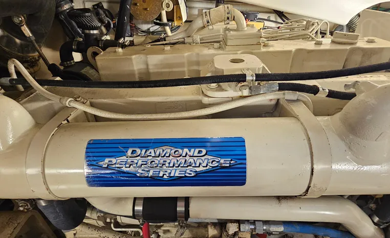 Features Twin Cummins 6CTA 8.3 450-hp Diamond-Series Diesel Engine's with 791 original hours (1,000 hour service completed August 2022.). Notable features include but are not limited to the following: Air-Conditioning & Heat 2-Units (Note Cockpit AC/Heat), Head (Vacuflush) w/Vanity/Sink/Stall-Shower, Windlass Anchor w/Forward-Controls, Onan 9.0 kw Generator (459-hrs), Electronics Package (iCOM VHF Marine Radio, Garmin 7612 Color / TouchScreen Radar w/GPS/Chartplotter/Sounder - Note Back-up Camera, Simrad Autopilot), Fusion Premium Sound-System, Glendenning Engine Sync., Swim-Platform w/Boarding-Ladder, and MUCH more!