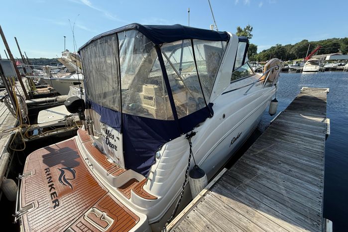 This tastefully updated Rinker 342 Fiesta Vee is located on the beautiful St. Croix river in Stillwater, MN. Updates include TopDek flooring in the cockpit, plank flooring in the cabin, custom wood cabin stairs, and more!