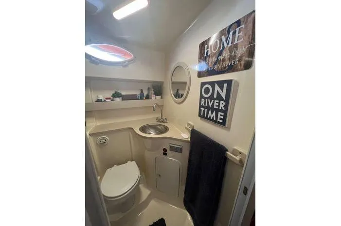 Head with separate shower stall *not very common in boats of this size