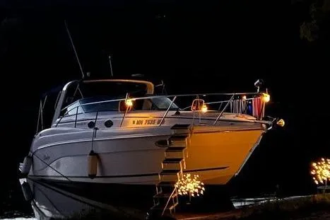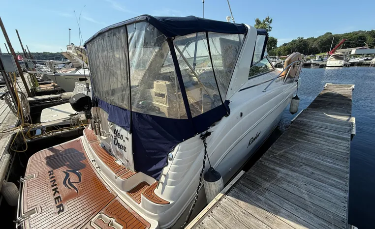 This tastefully updated Rinker 342 Fiesta Vee is located on the beautiful St. Croix river in Stillwater, MN. Updates include TopDek flooring in the cockpit, plank flooring in the cabin, custom wood cabin stairs, and more!