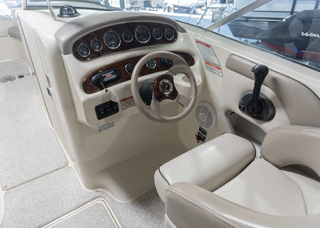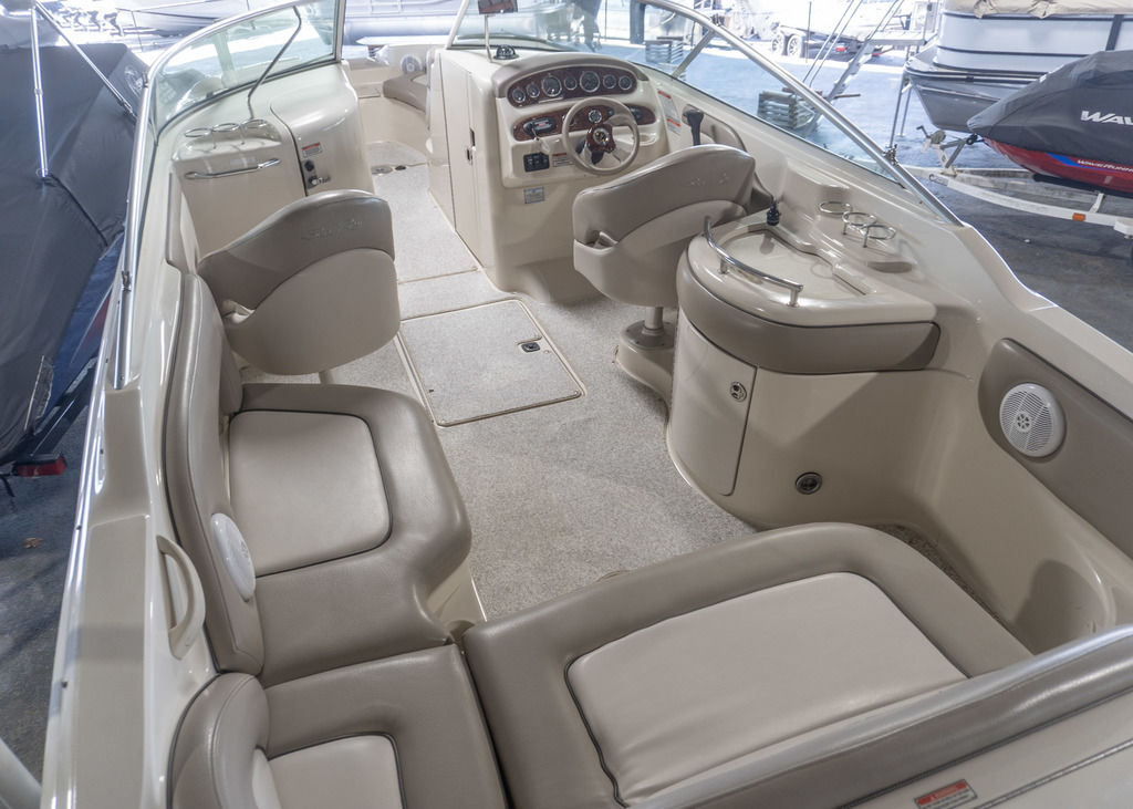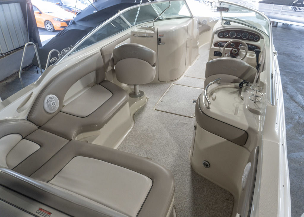 The 2002 Sea Ray 270 Sundeck is a spacious and versatile deck boat designed for entertaining, watersports, and relaxing days on the water. Known for its wide beam and open layout, the Sundeck series offers exceptional seating, storage, and comfort—making it a great choice for families and large groups.