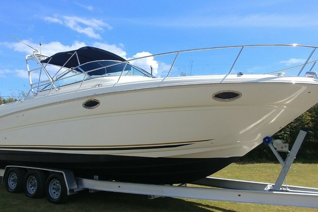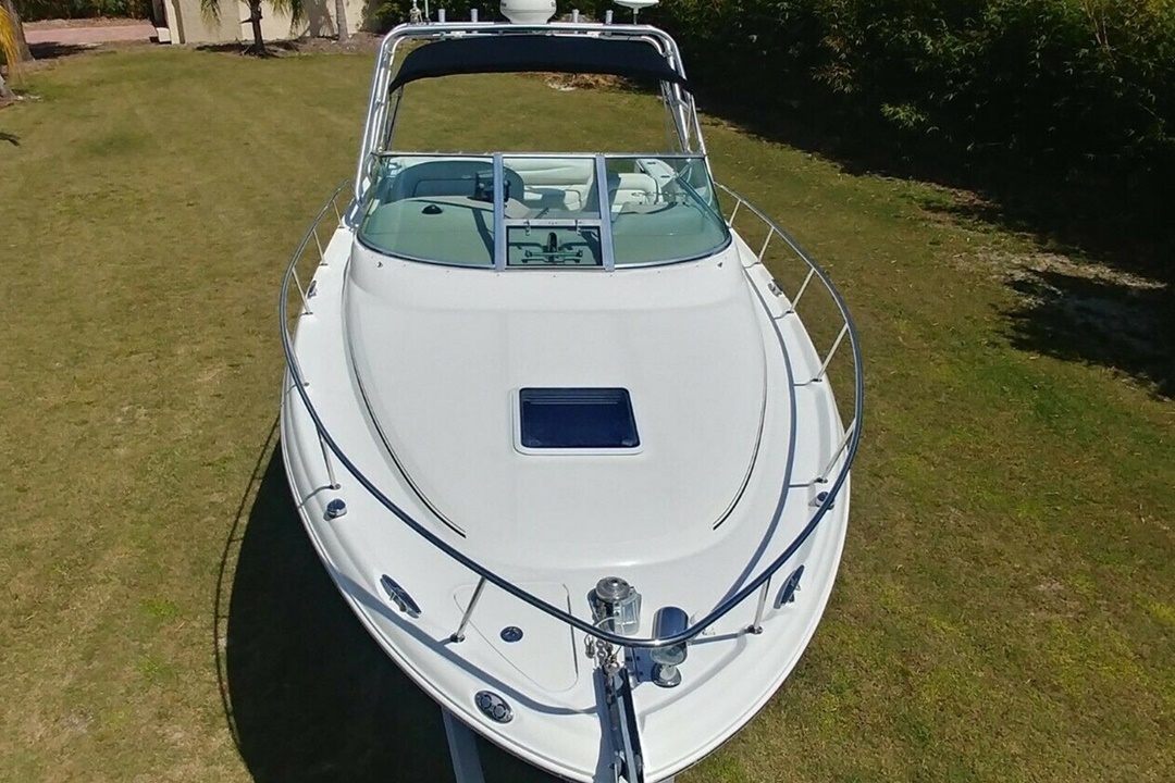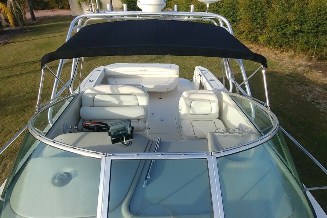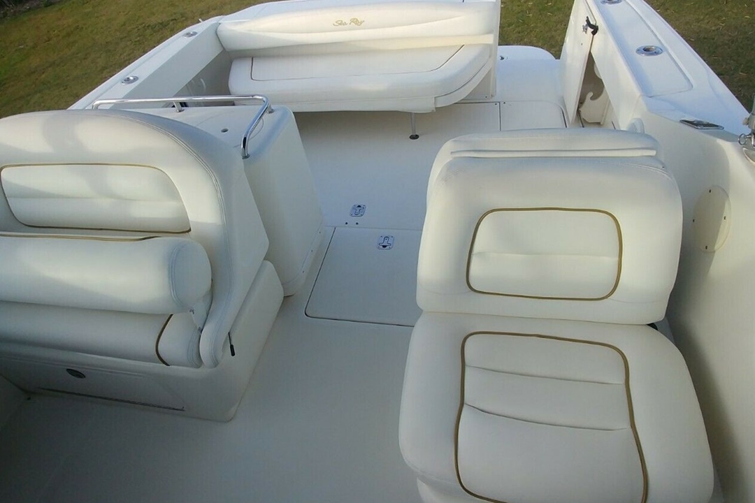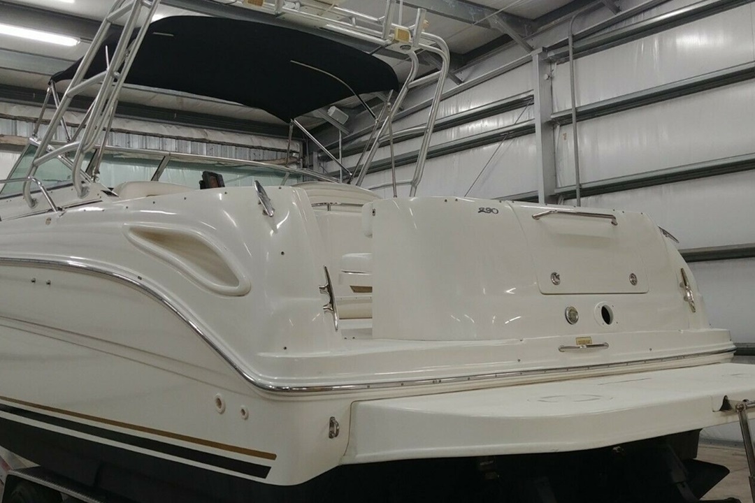 Clean and very well maintained 2002 Sea Ray 290 Amberjack boat powered by twin Mercury 5.0L MPI Bravo III.