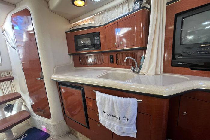 HIGHLY RECOMENDED! Freshwater / Great Lakes boat since new this vessel features Twin MerCruiser 5.7-litre MPI 260-hp Gas Engine's with Bravo III Sterndrives and only 529 original hours. Notable features include but are not limited to the following: Sea Deck flooring 2021, Air-Conditioning & Heat, Head (Vacuflush) w/Vanity/Sink/Shower, Canvas Cabin Carpet Runners, Westerbeke Generator 159 HOURS, Raymarine Hybrid Touch GPS/Chartplotter / Tri-Data / VHF Marine Radio, Fusion stereo 2021, LUMITECH UNDERWATER LIGHTS 2021, NEW CANVAS & GLASS 2021,Windlass Anchor, Cockpit Wet Bar w/Sink/Refrigerator, Newer Canvas Package (Bridge Enclosure, Bimini Top, Cockpit Mooring Cover), Snap-in Snap-out Cockpit Carpeting, Clarion AM/FM Stereo System w/CD-Player, fresh bottom paint and MUCH more!