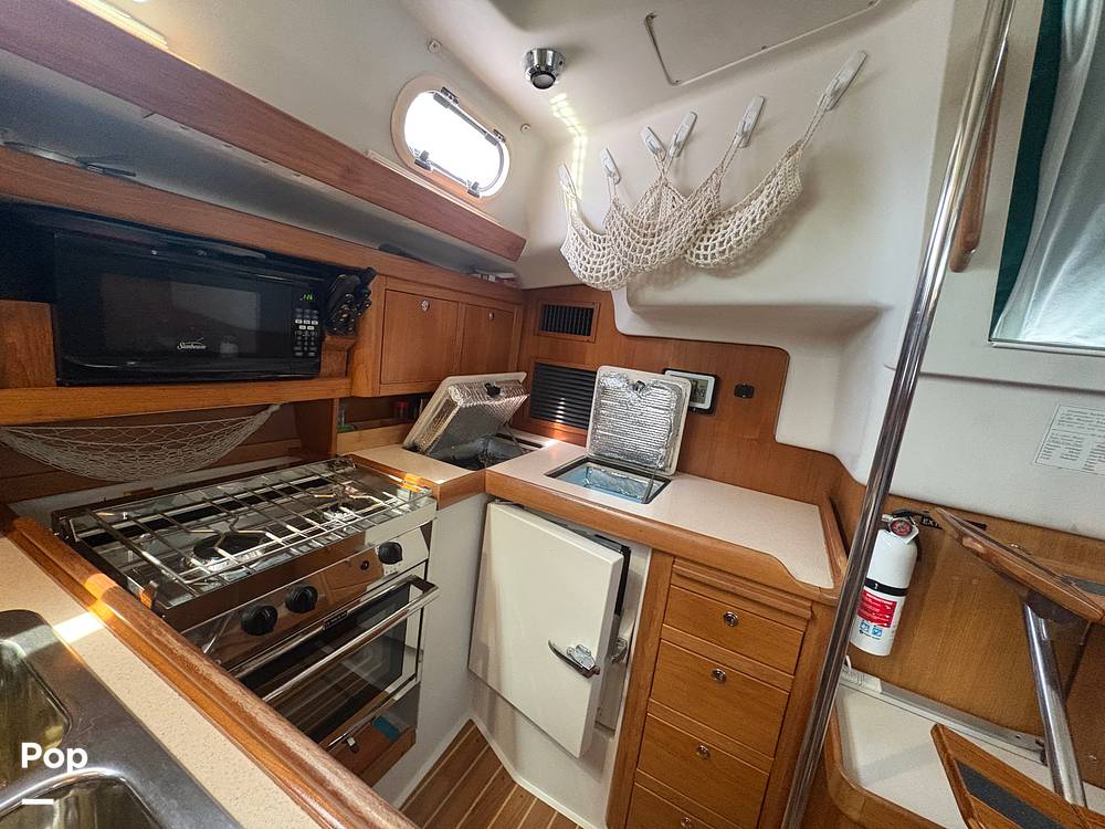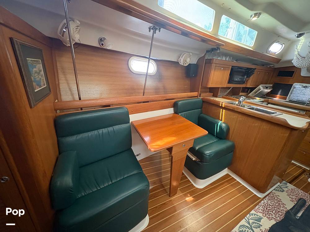 On deck, the large cockpit with a walk-through transom, swim platform, dodger, and bimini offers both comfort and control. Powered by a Universal 35 HP diesel engine, she's ready to go wherever the wind takes you.