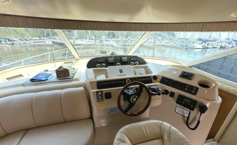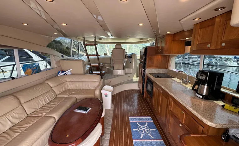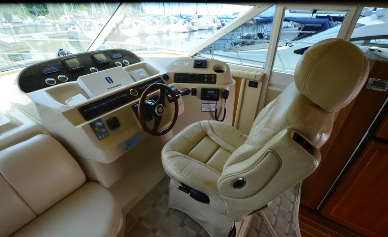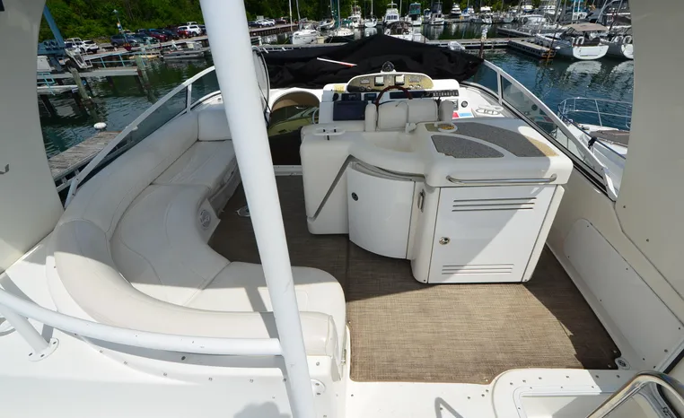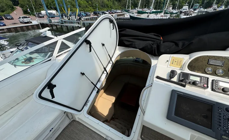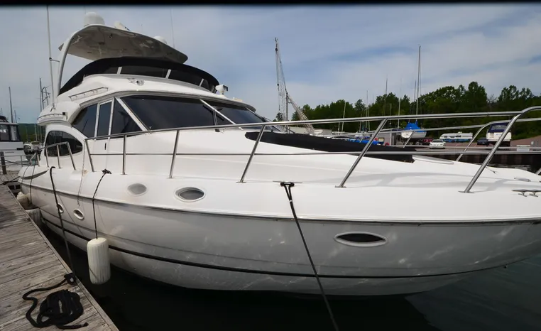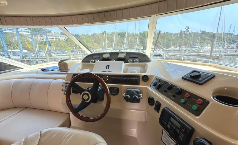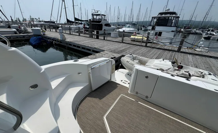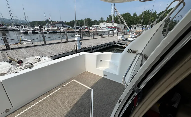 Well cared for 50' cruiser boasts large salon, roomy flybridge, and three staterooms. Yacht is exquisitely appointed with Corian countertops, hard-wood floors, and smooth finishes. Owners have meticulously maintained this vessel but are getting out. Yacht is powered by twin diesel Volvo Penta D12-715 motors with 1600 hours. Also features desirable hydraulic swim platform. Pictures are of actual vessel and show just how much care has been put into this yacht. Currently in the water on Lake Superior in Bayfield WI.