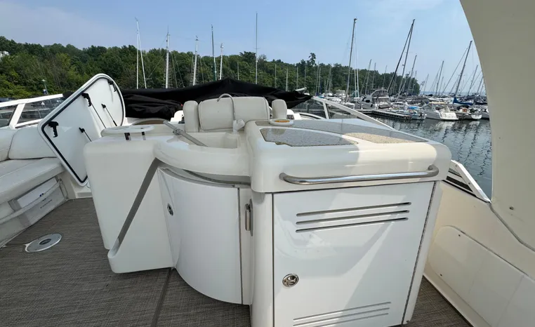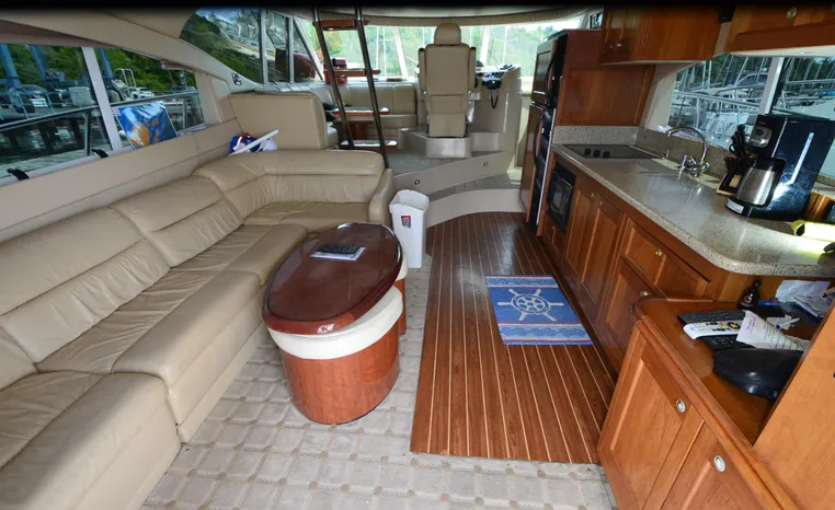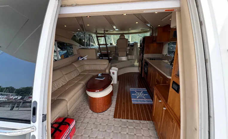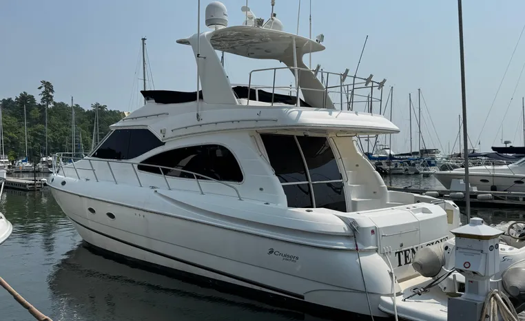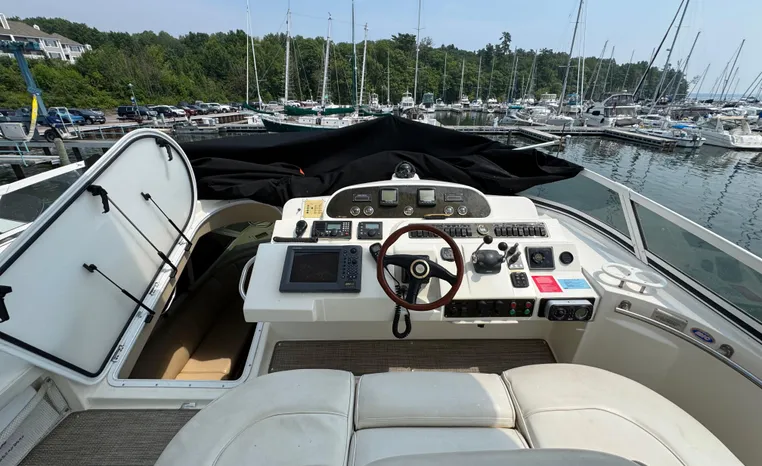 Well cared for 50' cruiser boasts large salon, roomy flybridge, and three staterooms. Yacht is exquisitely appointed with Corian countertops, hard-wood floors, and smooth finishes. Owners have meticulously maintained this vessel but are getting out. Yacht is powered by twin diesel Volvo Penta D12-715 motors with 1600 hours. Also features desirable hydraulic swim platform. Pictures are of actual vessel and show just how much care has been put into this yacht. Currently in the water on Lake Superior in Bayfield WI.