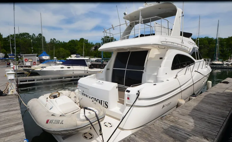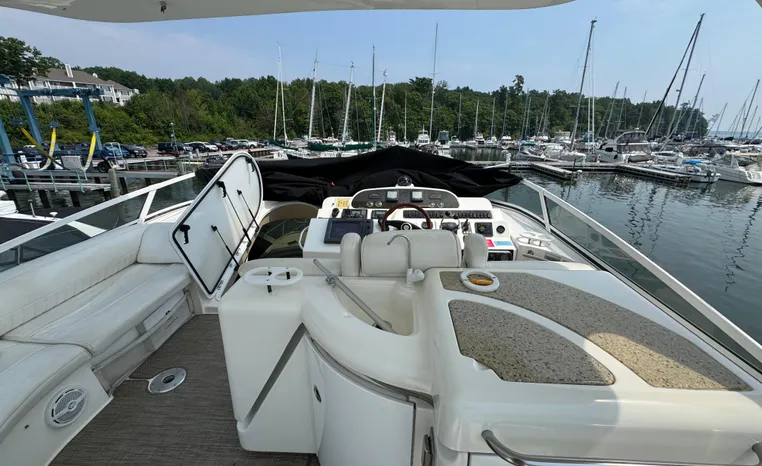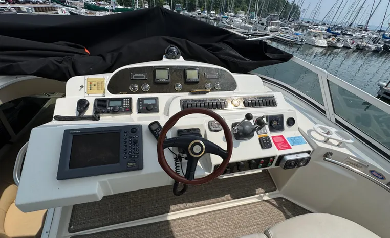 Well cared for 50' cruiser boasts large salon, roomy flybridge, and three staterooms. Yacht is exquisitely appointed with Corian countertops, hard-wood floors, and smooth finishes. Owners have meticulously maintained this vessel but are getting out. Yacht is powered by twin diesel Volvo Penta D12-715 motors with 1600 hours. Also features desirable hydraulic swim platform. Pictures are of actual vessel and show just how much care has been put into this yacht. Currently in the water on Lake Superior in Bayfield WI.