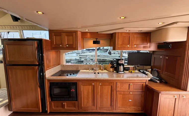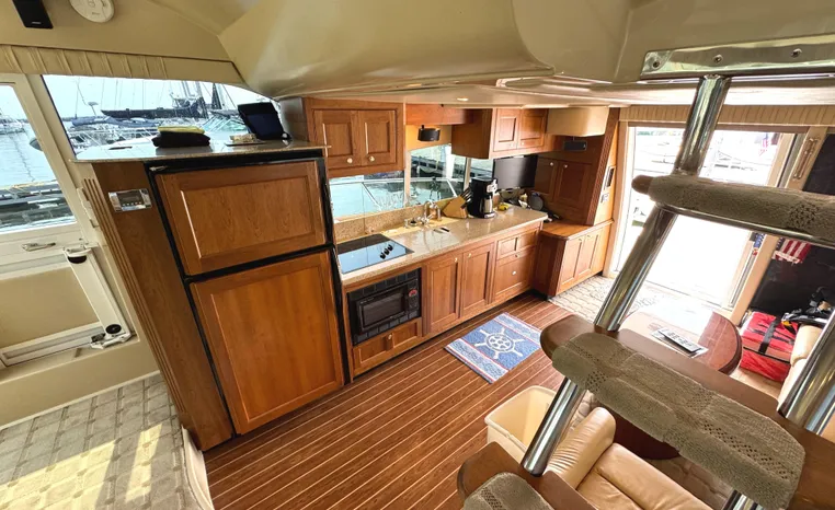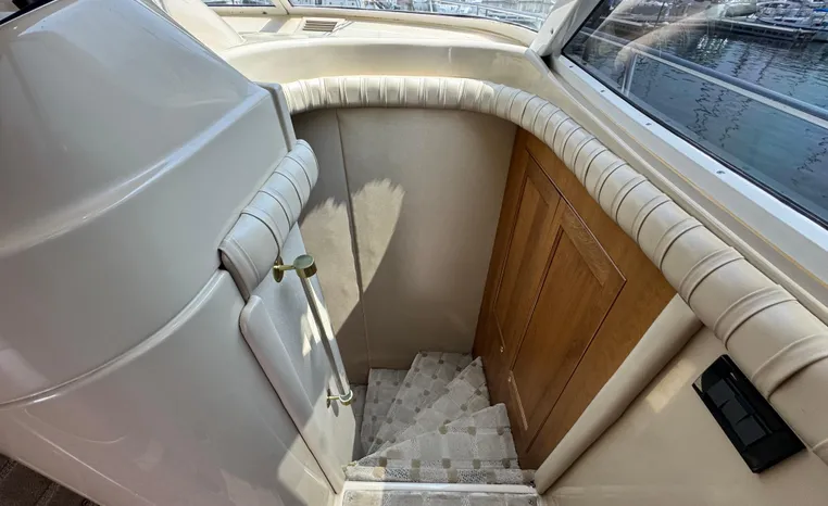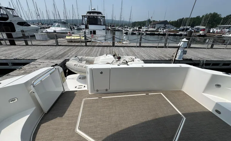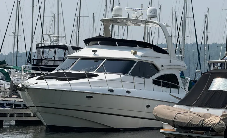 Well cared for 50' cruiser boasts large salon, roomy flybridge, and three staterooms. Yacht is exquisitely appointed with Corian countertops, hard-wood floors, and smooth finishes. Owners have meticulously maintained this vessel but are getting out. Yacht is powered by twin diesel Volvo Penta D12-715 motors with 1600 hours. Also features desirable hydraulic swim platform. Pictures are of actual vessel and show just how much care has been put into this yacht. Currently in the water on Lake Superior in Bayfield WI.