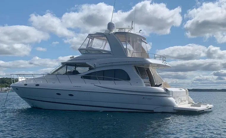 Freshwater / Great Lakes vessel since new, exterior fully detailed and ready for summer. This vessel features Twin Volvo D12-700 700-hp Diesel Engine's with only 984 original hours (service complete fall 2025). Notable features include but are not limited to the following: Air-Conditioning & Heat (3-Units), (2) Heads (Vacuflush) w/Vanity/Sink/Stall-Shower's, Central Vacuum System, Washer/Dryer, Windlass Anchor, Onan Generator in Sound Box (1264-hours), Full and Redundant Navigation Package at Upper and Lower helm Stations, SONY Premium Sound System w/Bose and JL-Audio Speakers / AMP, Electric Swim Platform w/ Removable Tender Cradles, Fully Enclosed Bridge w/ Hard Top, Fly-Bridge and Cockpit Snap-in Snap-out Carpeting, Flybridge Wet Bar and MUCH MUCH more!