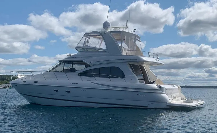 Freshwater / Great Lakes vessel since new, exterior fully detailed and ready for summer. This vessel features Twin Volvo D12-700 700-hp Diesel Engine's with only 984 original hours (service complete fall 2025). Notable features include but are not limited to the following: Air-Conditioning & Heat (3-Units), (2) Heads (Vacuflush) w/Vanity/Sink/Stall-Shower's, Central Vacuum System, Washer/Dryer, Windlass Anchor, Onan Generator in Sound Box (1264-hours), Full and Redundant Navigation Package at Upper and Lower helm Stations, SONY Premium Sound System w/Bose and JL-Audio Speakers / AMP, Electric Swim Platform w/ Removable Tender Cradles, Fully Enclosed Bridge w/ Hard Top, Fly-Bridge and Cockpit Snap-in Snap-out Carpeting, Flybridge Wet Bar and MUCH MUCH more!