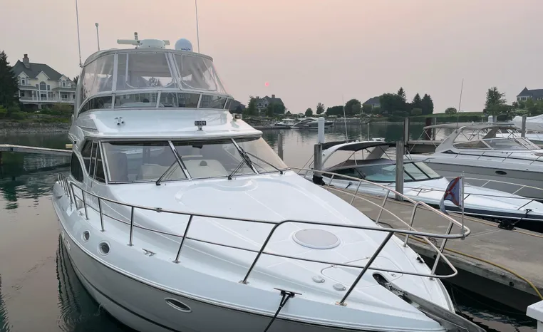 Freshwater / Great Lakes vessel since new, exterior fully detailed and ready for summer. This vessel features Twin Volvo D12-700 700-hp Diesel Engine's with only 984 original hours (service complete fall 2025). Notable features include but are not limited to the following: Air-Conditioning & Heat (3-Units), (2) Heads (Vacuflush) w/Vanity/Sink/Stall-Shower's, Central Vacuum System, Washer/Dryer, Windlass Anchor, Onan Generator in Sound Box (1264-hours), Full and Redundant Navigation Package at Upper and Lower helm Stations, SONY Premium Sound System w/Bose and JL-Audio Speakers / AMP, Electric Swim Platform w/ Removable Tender Cradles, Fully Enclosed Bridge w/ Hard Top, Fly-Bridge and Cockpit Snap-in Snap-out Carpeting, Flybridge Wet Bar and MUCH MUCH more!
