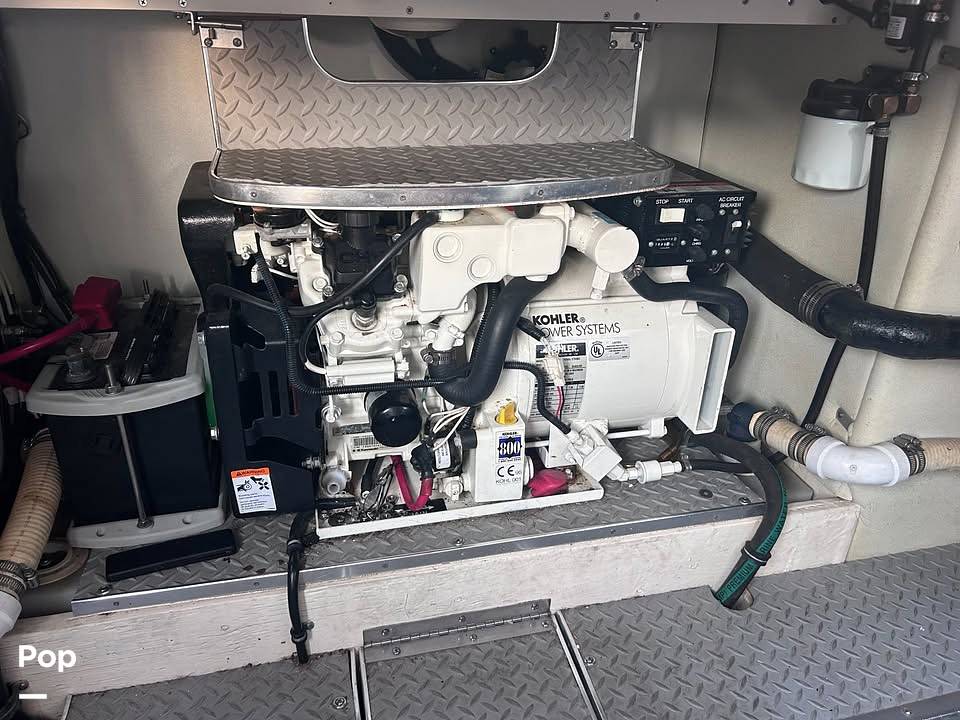 The electric hatch provides easy access to the engines. Also found in the transom is a large locker adequate for ample storage of toys and equipment. The swim platform and swim ladder make it easy to enjoy swimming right from the boat. And the generator can power onboard systems when not connected to shore power.