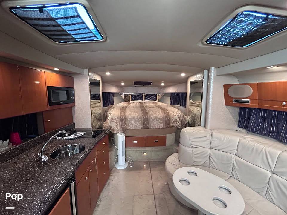 The galley of this 2003 Formula offers a settee that converts to a double berth. The galley is equipped with a refrigerator/freezer, microwave, stove, and sink. The dinette provides comfortable seating for meals and can often be converted into an additional berth, allowing the 37 PC to sleep six people comfortably. The head compartment includes a VacuFlush toilet, sink, and shower.