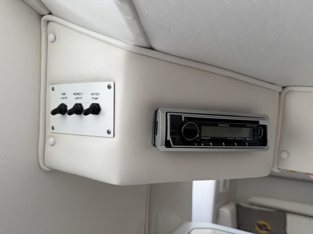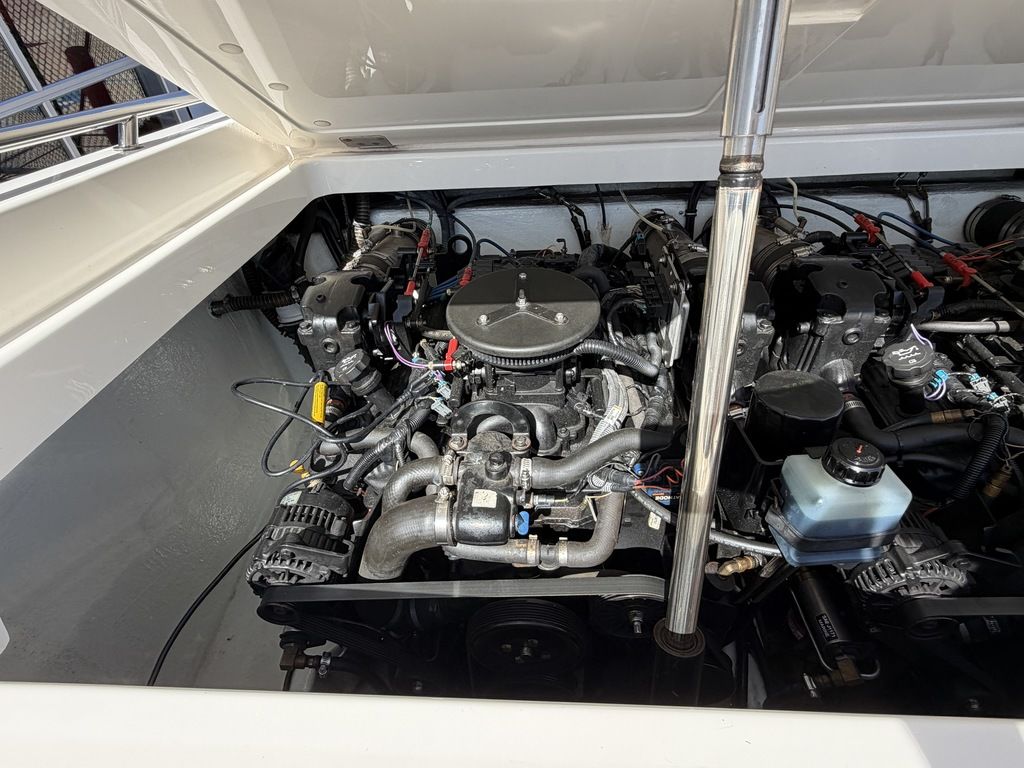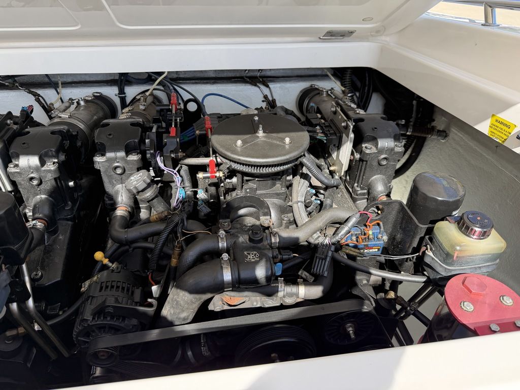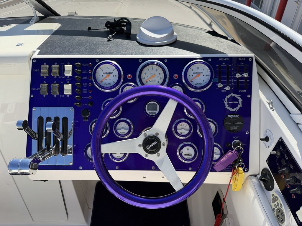 Latham Marine steering assemblies, 4 blade stainless steel props, Swim Ladder, Gaffrig throttle and shift assembly, Gaffrig gauges, mechanical trim and tab indicators, electric bolsters, built in coolers, sink, pump out head, daybed, Kicker speakers, Kenwood head unit, Snap in carpet, and more!