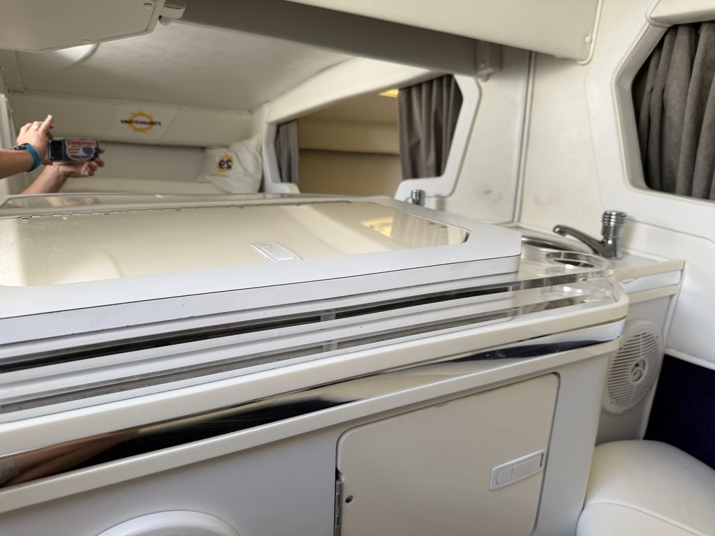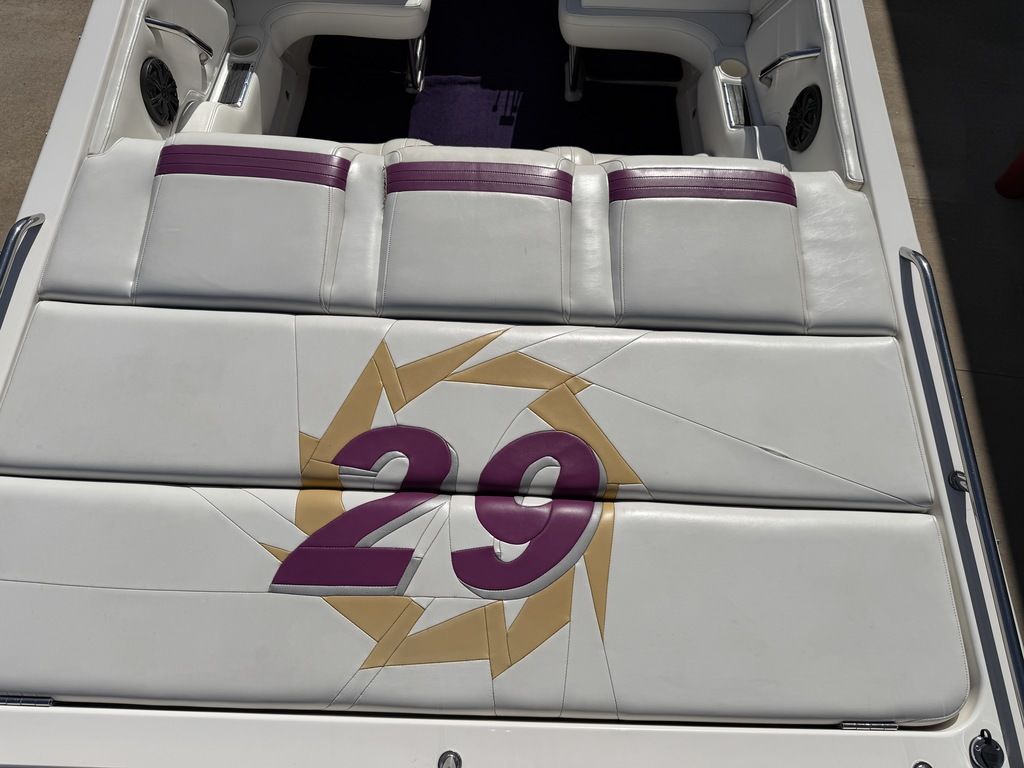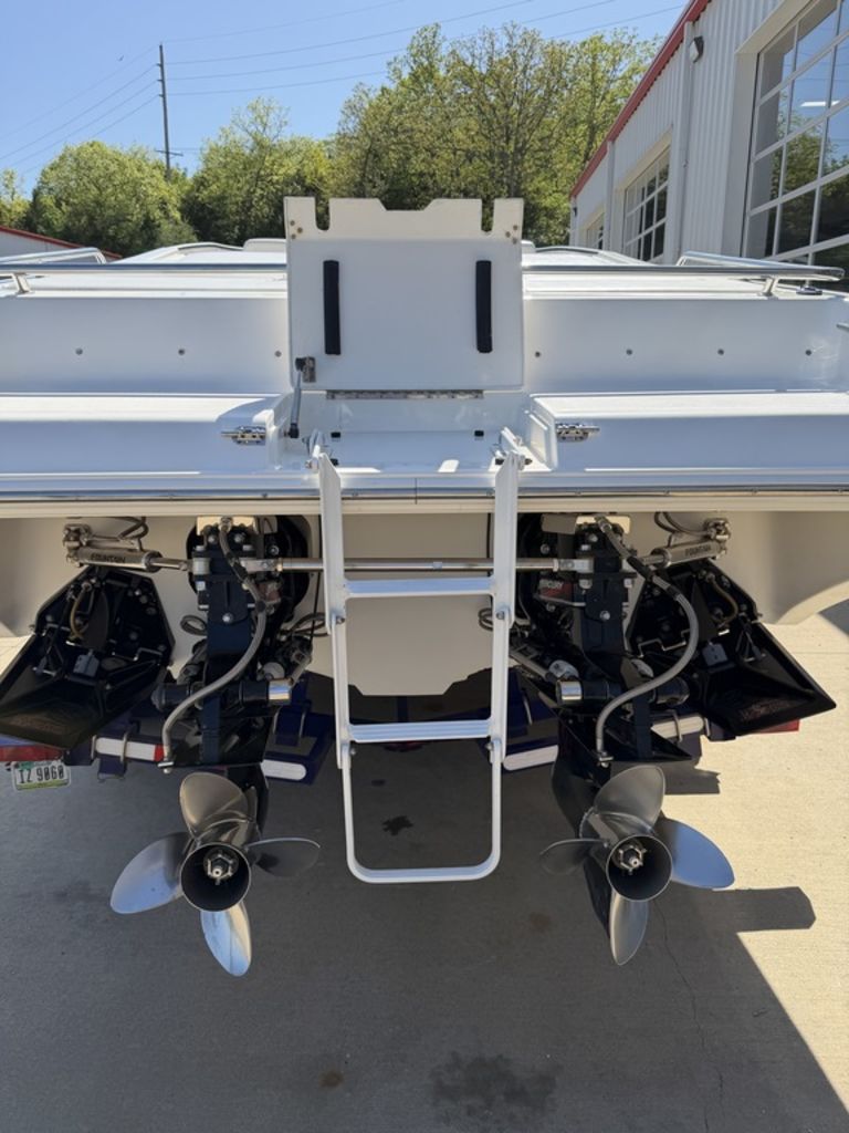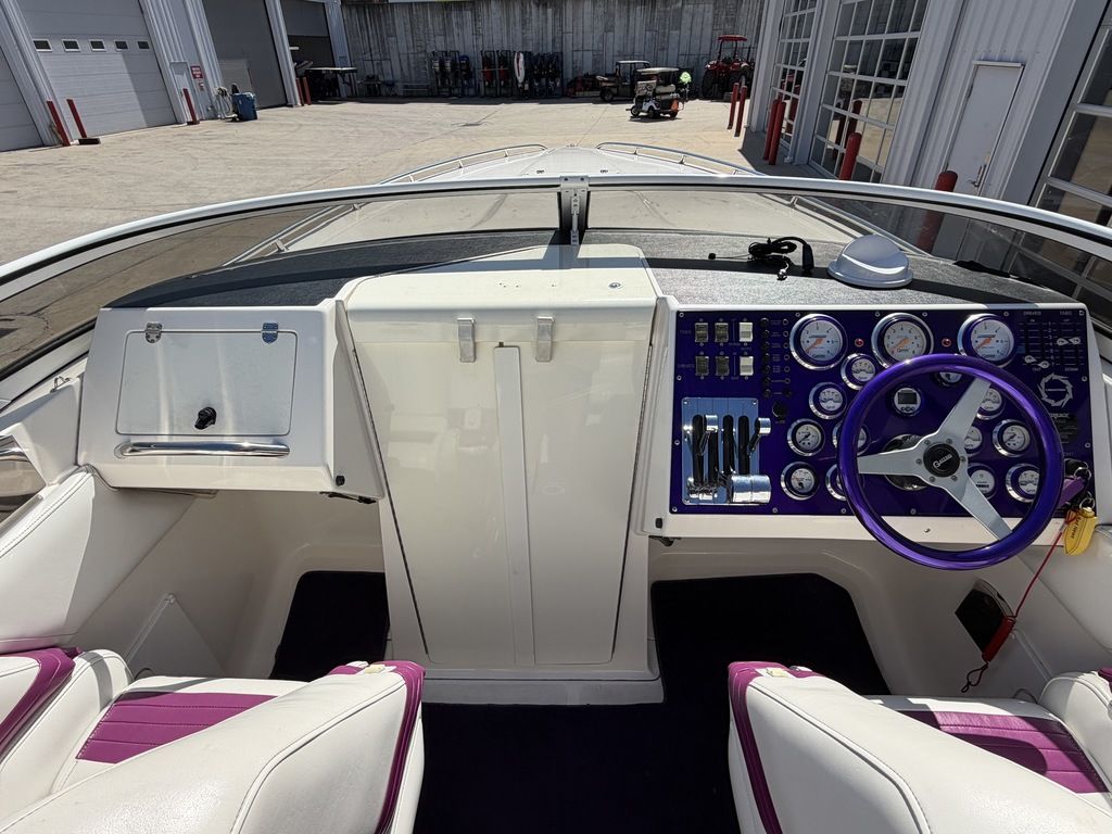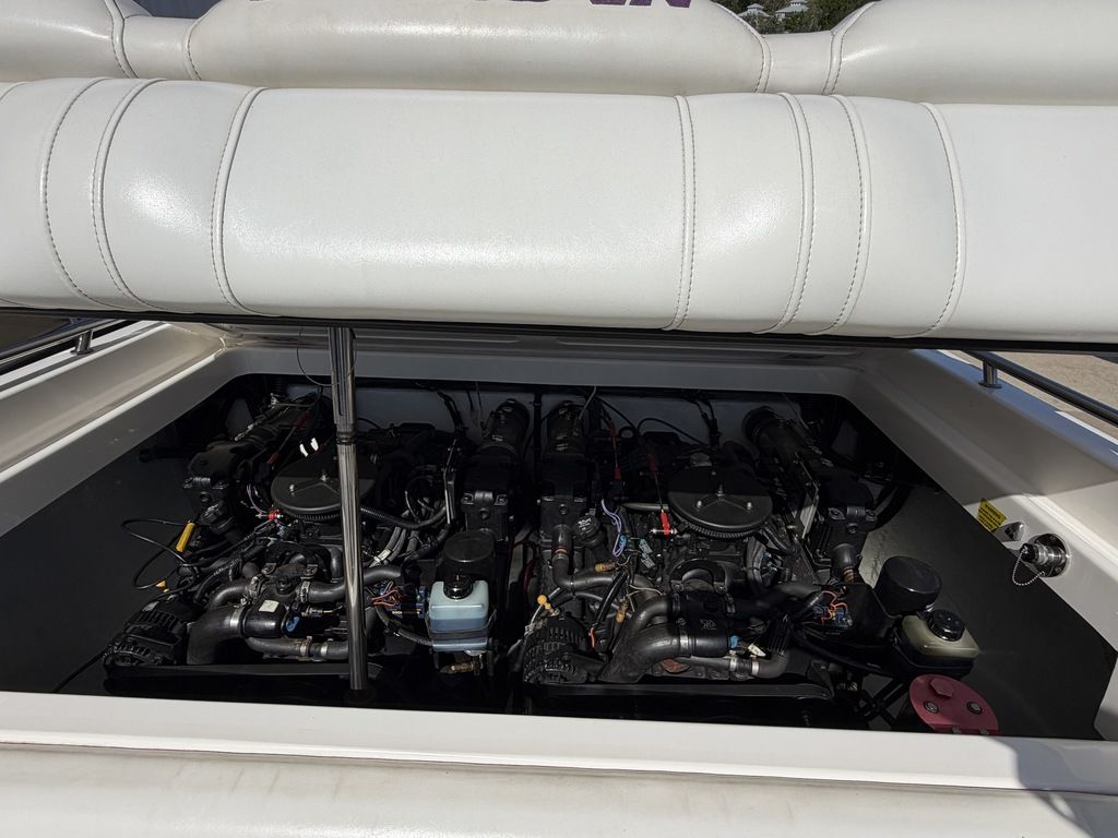Latham Marine steering assemblies, 4 blade stainless steel props, Swim Ladder, Gaffrig throttle and shift assembly, Gaffrig gauges, mechanical trim and tab indicators, electric bolsters, built in coolers, sink, pump out head, daybed, Kicker speakers, Kenwood head unit, Snap in carpet, and more!