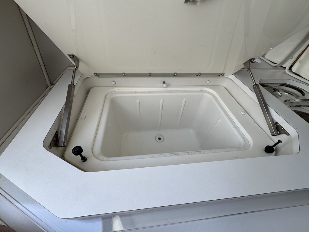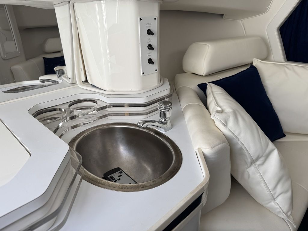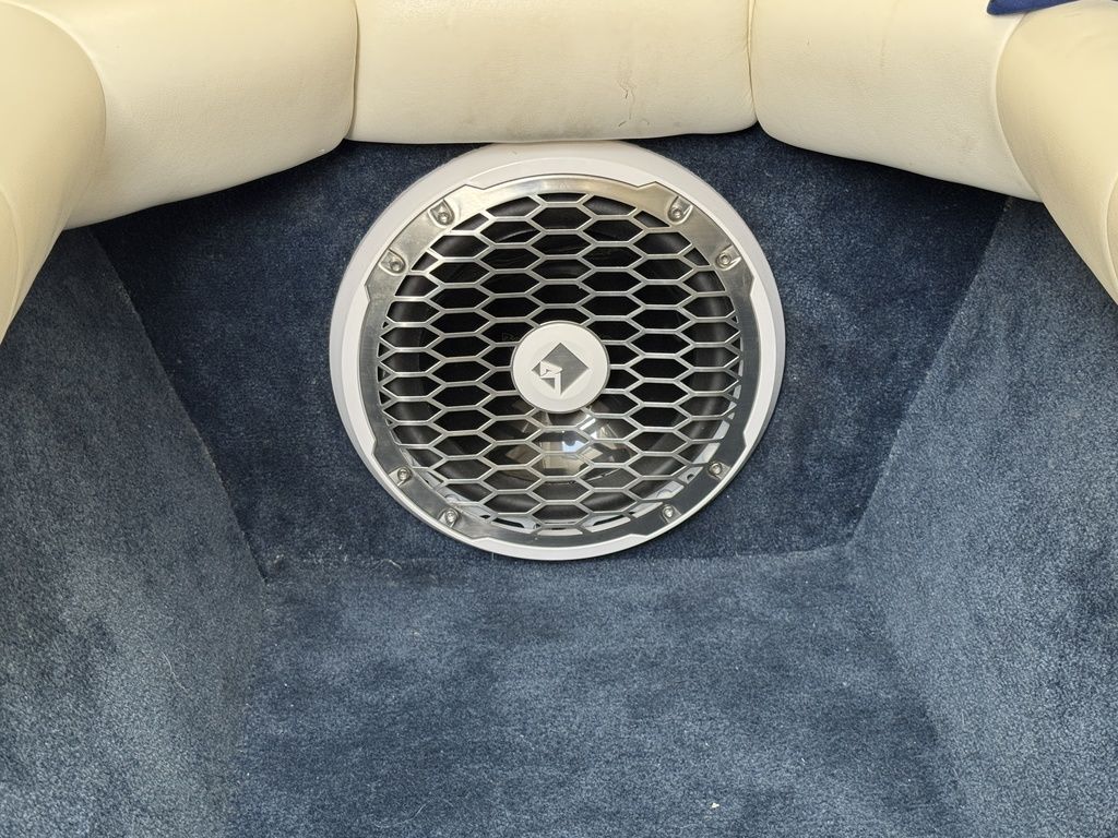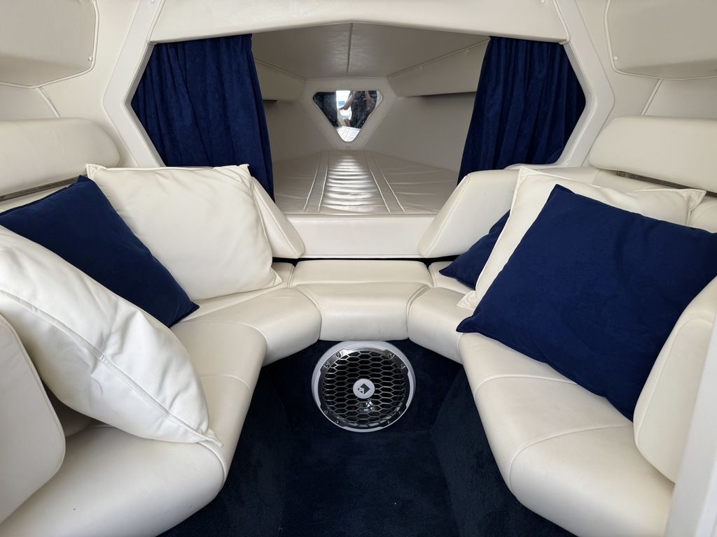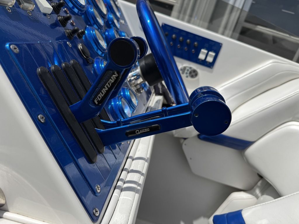Latham Marine steering assemblies, 4 blade stainless steel props, docking lights, Gaffrig throttle and shift assembly, Gaffrig gauges, mechanical trim and tab indicators, electric bolsters, built in coolers, sink, pump out head, daybed, Rockford Fosgate speakers, Kenwood head unit, and more!