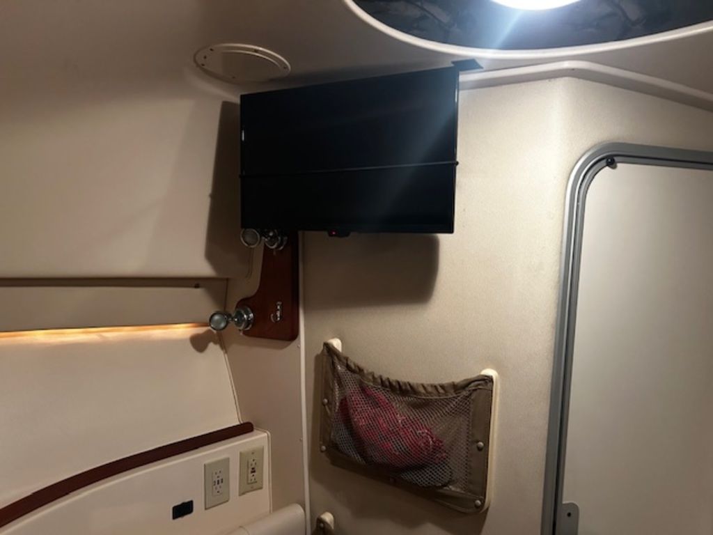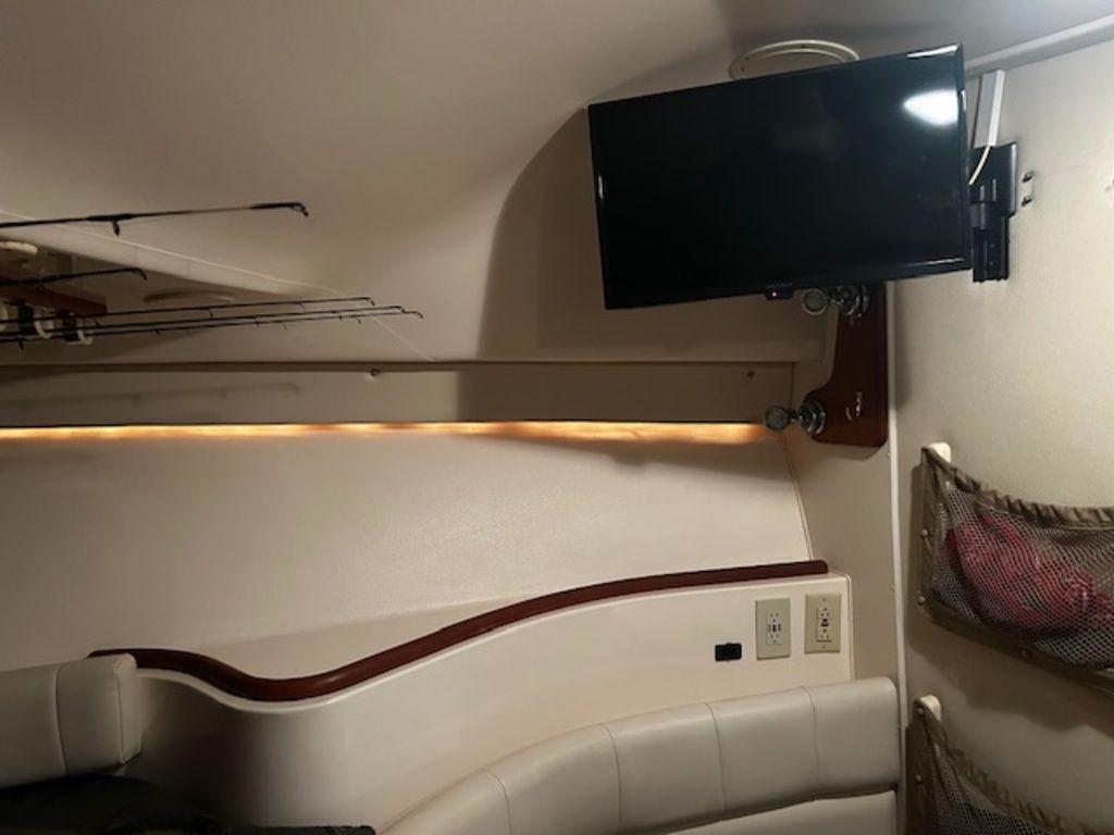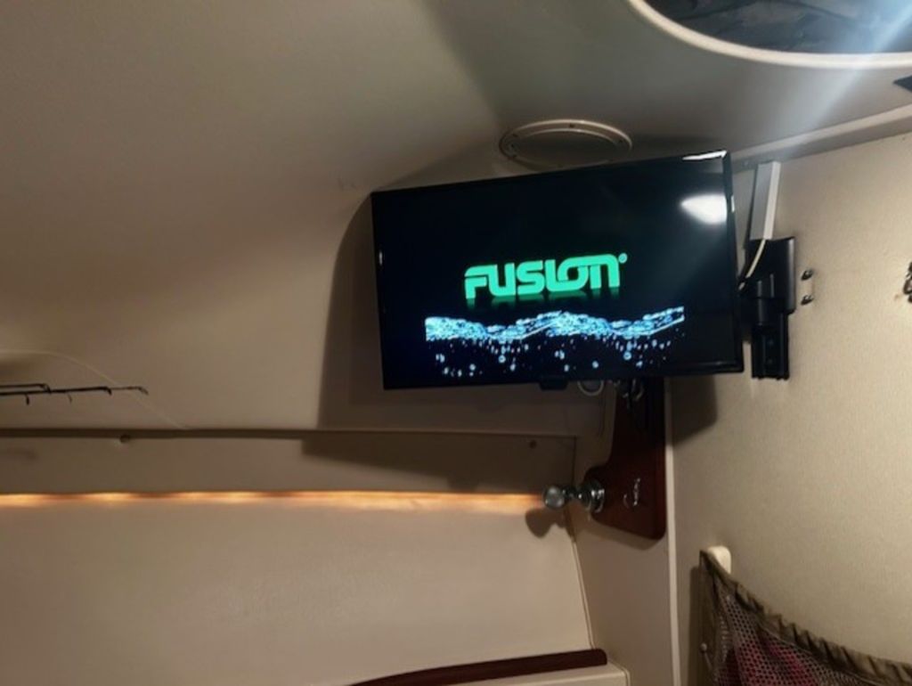 -Audio/Visual: Fusion DVD/Radio integrated into NMEA 2000 (app/Garmin controlled). 6 Fusion speakers (Cabin, Helm, Cockpit), Subwoofer, and 2 Amps. 15” flatscreen TV in cabin.