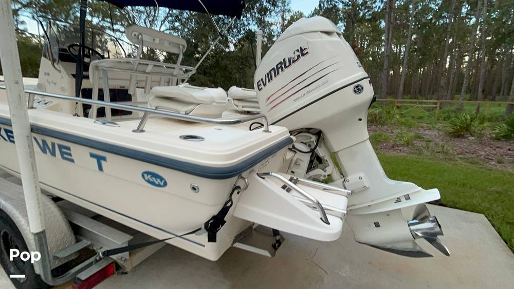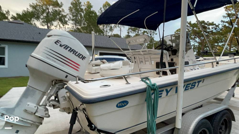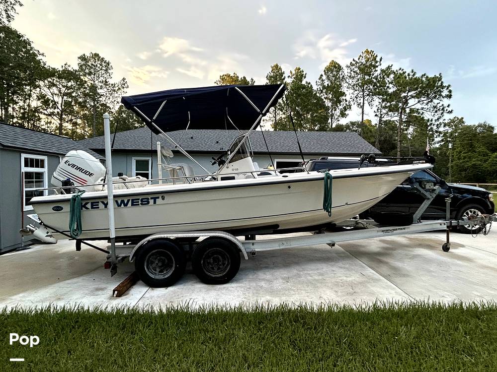 2003 Key West 216 Bay Reef with 2003 Evinrude 200 HP Motor and tandem axle trailer.