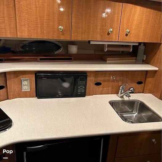 Below she sleeps 6 in the cabin with the fixed forward berth, dinette that makes into a sleeping area and spacious mid-berth. The large galley with microwave, 2 burner alcohol / electric stove, refrigerator, sink and solid surface countertop make entertaining easy.