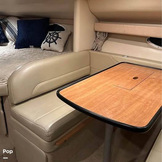 Spacious and sporty, loaded with options and tasteful updates, this one should not be overlooked. To keep you and your guests comfortable and entertained, the cabin is air conditioned and a newer banging stereo system will be kicking out the Summer hits. The captain is going to appreciate the convenience of a windlass, radar with navigation and updated canvas enclosure if the weather takes a turn.