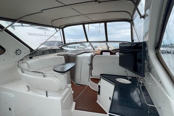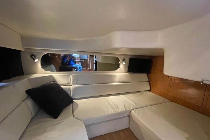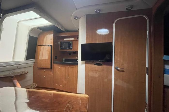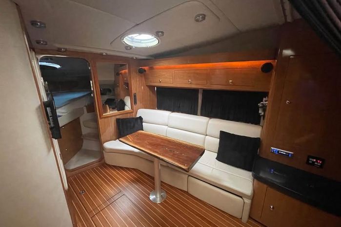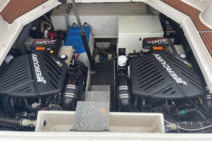 38’ LOA, 8.1 mercruisers(450hrs), Kohler generator(450hrs), 10gal water heater, heat A/C, Windlass anchor, Hurley davit system, Isinglass/camper pkg, Sleeps 6, Head/shower, full galley, Teak cabin flooring, 4 TV’s, Topdeck flooring deck/swim platform, Marine audio triple function(3 vol locations),Blue LED speakers/swim platform lights/bar lights, fold up bow ladder, foredeck sun lounge/wash down, Rear shower, cockpit fridge/sink, 24” Blackstone, All new Simrad Electronics(2025),New batteries. Full service completed this spring (2025)