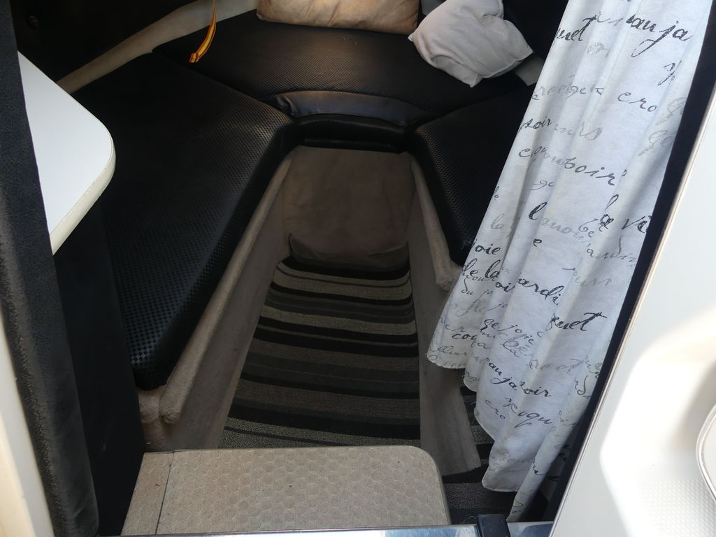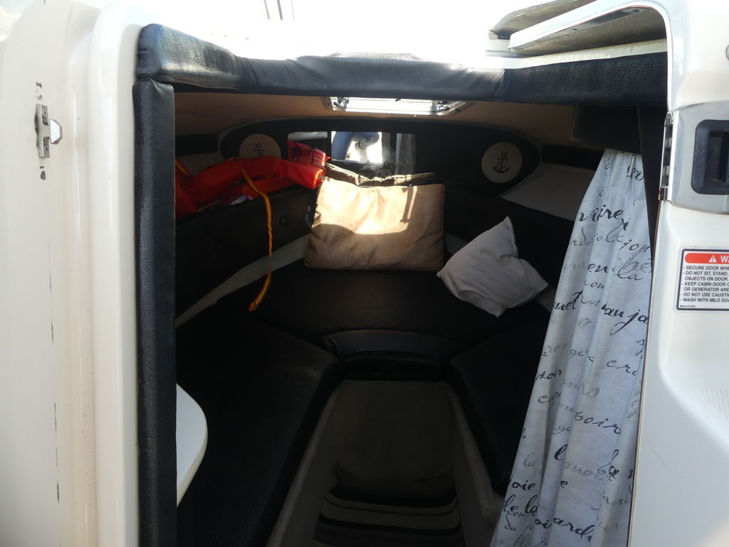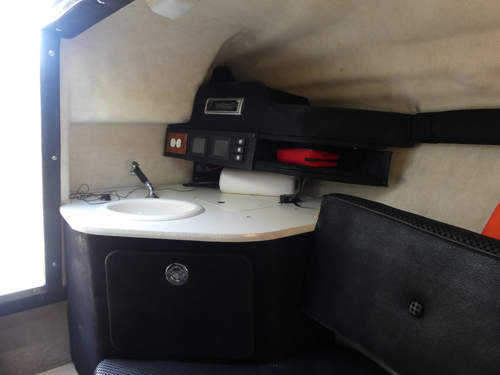 Below deck, the comfortable cuddy cabin provides a V-berth that sleeps two, along with a sink, storage, and space for a portable head, making overnight stays both convenient and enjoyable.