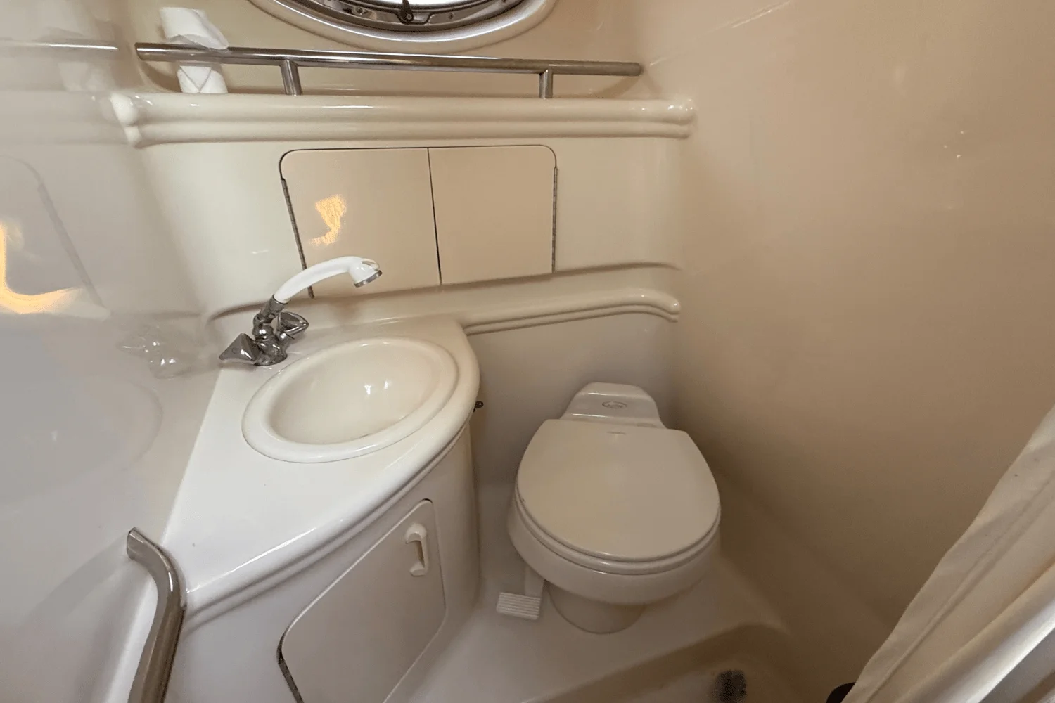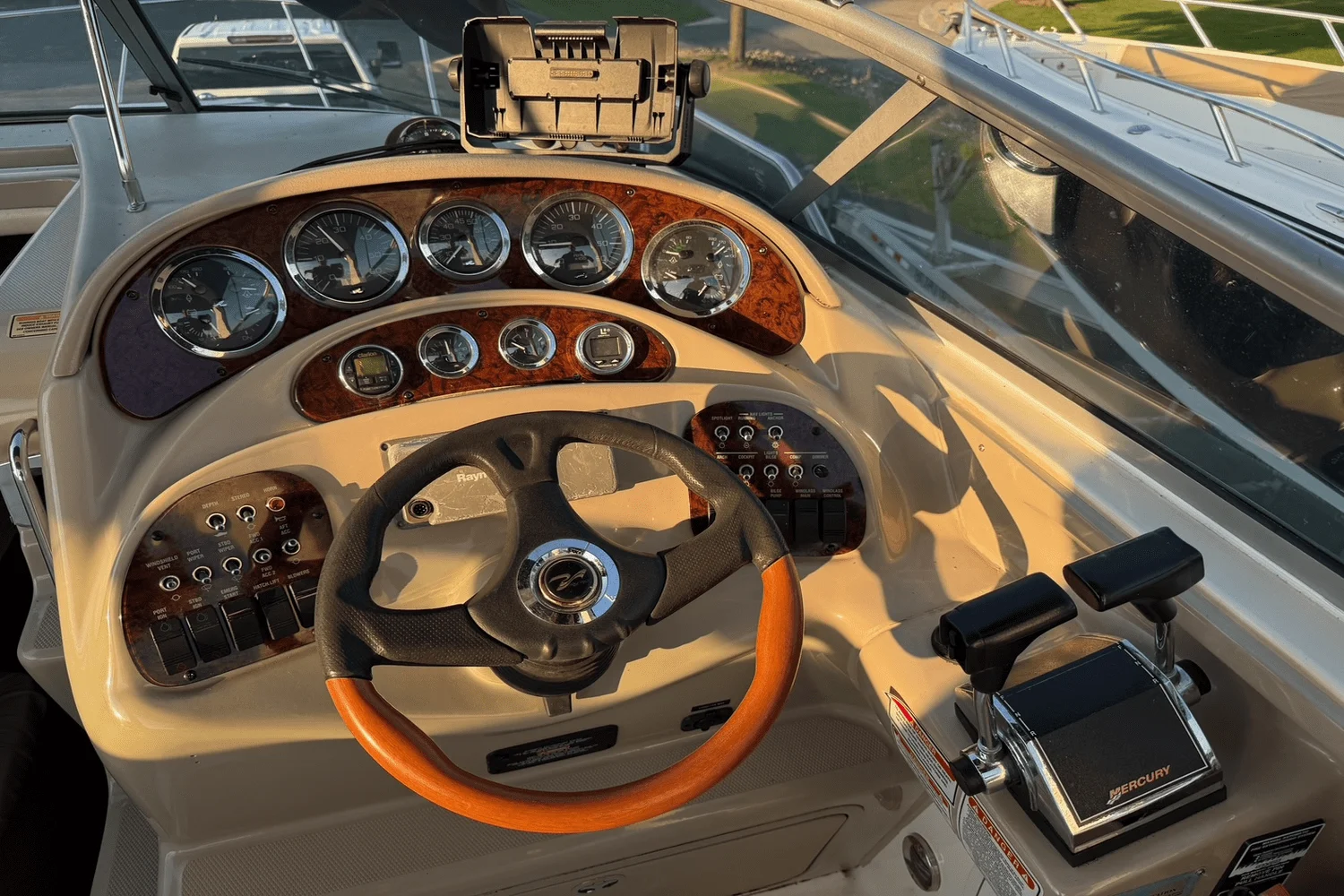 A huge sales success, those looking for a versatile pocket cruiser will find much to like in the 280 Sundancer. Sea Ray hit all the right buttons with the 280—terrific styling, top-shelf amenities, and a well-appointed interior with comfortable accommodations for six. Beginning with her spacious single-level cockpit with wet bar, portside lounger, and transom door, the stern bench seat folds out of the way when not needed and the rear-facing bench seat converts to a sun lounge. A centerline companionway leads to the 280’s cherry-trimmed interior with U-shaped dinette to port, full-service galley opposite, convertible V-berth forward (with removable table), and a compact head/shower to starboard. Privacy curtains separate both sleeping areas from the salon. An extended swim platform was standard and a convenient storage locker is built into the transom. Molded steps in the sliding companionway door provide quick bow access via the walk-thru windshield. On the downside, the mid-cabin berth is a tight fit for adults and the engine compartment hatch is heavy. Built on a solid fiberglass hull, twin 220hp MerCruiser sterndrives, the 280 Sundancer will cruise at 24–26 knots (about 40 knots top).