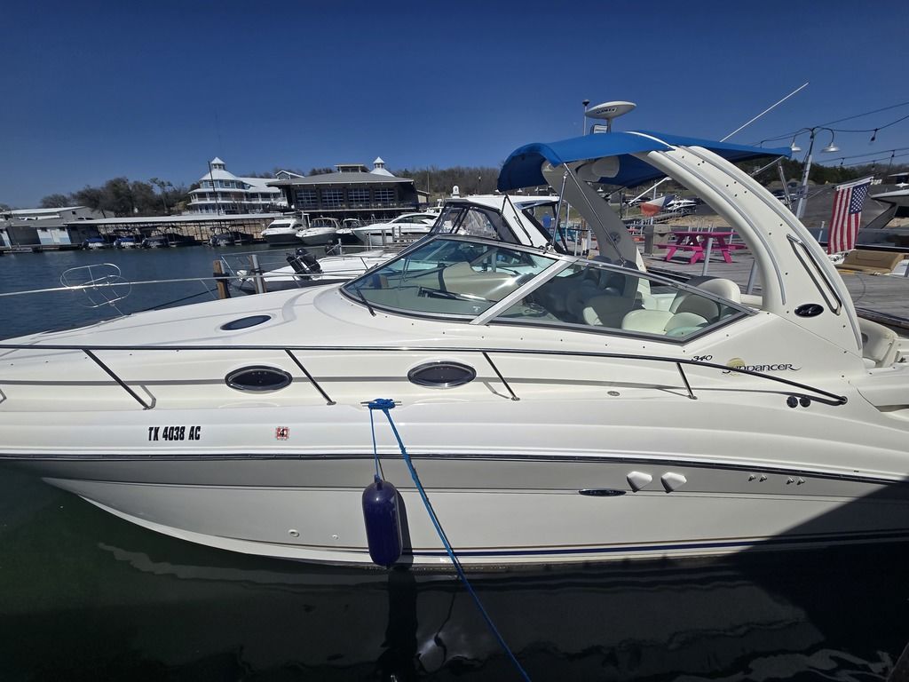 Get ready to hit the water in style with this 2003 Sea Ray 340 Sundancer, powered by twin MerCruiser 496 MAG engines (375HP each). Located on Lake Texoma, one of the premier boating lakes in Texas and Oklahoma, this luxury cruiser is ready for your next adventure!