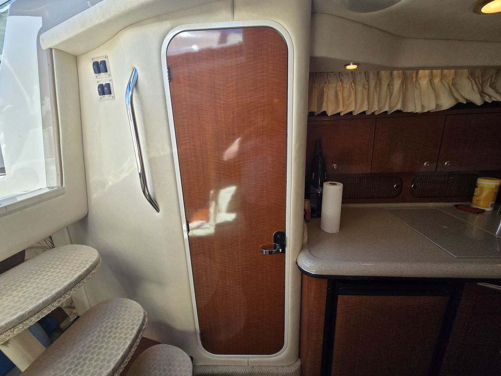 Gorgeous cabin with cherry wood cabinetry, full galley, and private sleeping areas