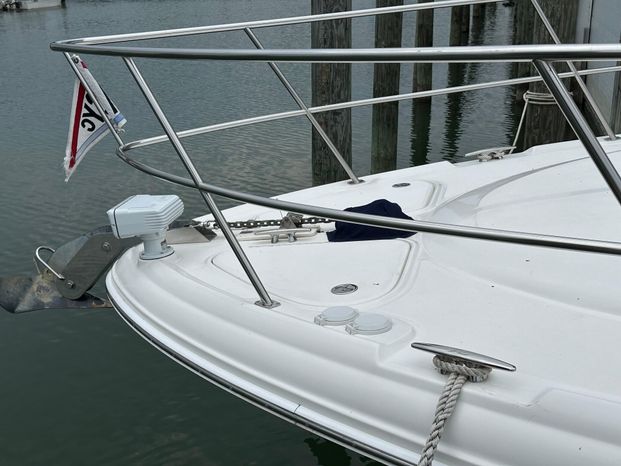 This vessel features Twin Cummins 6CTA 8.3 450-hp Diesel Engine's with approx. 1180 hours. Notable features include but are not limited to the following: Air-Conditioning & Heat (2-Units), (2) Head's (Vacuflush) w/Vanity/Sink/Shower (Note Stall-Shower Forward), Central Vacuum System, Windlass Anchor (w/Freshwater Washdown), Onan Generator, Electronics Package includes Garmin VHF Marine Radio, Dual Garmin 5212 w/GPS/Chartplotter, and Radar, Cockpit Wet Bar w/Sink/Refrigerator, Premium Fusion Sound System w/ JL Audio Speakers and Subwoofer, Above Windshield Isin Glass with Slant back Canvas, Removable Seagrass Cockpit Carpeting, and MUCH more!