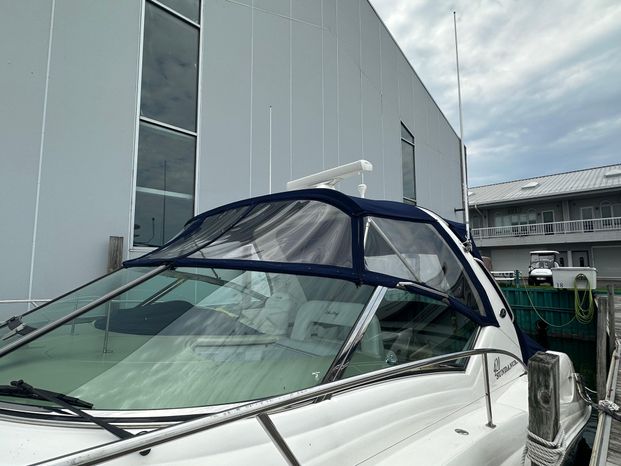 This vessel features Twin Cummins 6CTA 8.3 450-hp Diesel Engine's with approx. 1180 hours. Notable features include but are not limited to the following: Air-Conditioning & Heat (2-Units), (2) Head's (Vacuflush) w/Vanity/Sink/Shower (Note Stall-Shower Forward), Central Vacuum System, Windlass Anchor (w/Freshwater Washdown), Onan Generator, Electronics Package includes Garmin VHF Marine Radio, Dual Garmin 5212 w/GPS/Chartplotter, and Radar, Cockpit Wet Bar w/Sink/Refrigerator, Premium Fusion Sound System w/ JL Audio Speakers and Subwoofer, Above Windshield Isin Glass with Slant back Canvas, Removable Seagrass Cockpit Carpeting, and MUCH more!
