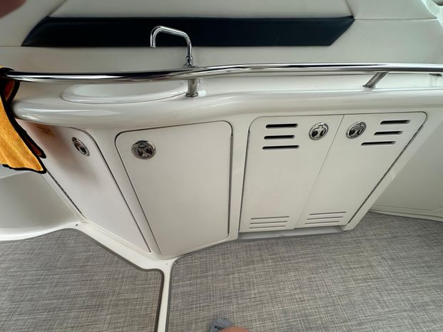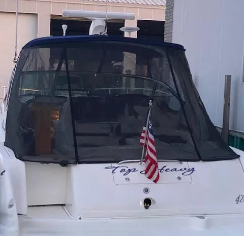 Introducing the stunning 2003 Sea Ray 420 Sundancer, a remarkable cruiser that combines elegance and performance. With an overall length of 45 feet, this vessel boasts a modified Vee hull made of durable fiberglass, ensuring a smooth and stable ride on the water. Powered by twin Cummins 6CTA 8.3 inboard engines, each delivering an impressive 450 horsepower, it achieves a cruising speed of 22 knots, making it perfect for exhilarating outings. The TOP HEAVY is equipped with an electric windlass, enhancing convenience during anchoring. With two heads, it offers ample facilities for comfort during your journeys. This well-maintained used boat is ideal for those seeking adventure and relaxation on the water, making it a perfect choice for both seasoned sailors and newcomers alike. Experience the luxury and performance of the Sea Ray 420 Sundancer and create unforgettable memories on the waves.