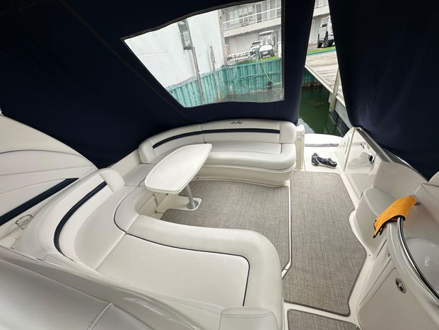 This vessel features Twin Cummins 6CTA 8.3 450-hp Diesel Engine's with approx. 1180 hours. Notable features include but are not limited to the following: Air-Conditioning & Heat (2-Units), (2) Head's (Vacuflush) w/Vanity/Sink/Shower (Note Stall-Shower Forward), Central Vacuum System, Windlass Anchor (w/Freshwater Washdown), Onan Generator, Electronics Package includes Garmin VHF Marine Radio, Dual Garmin 5212 w/GPS/Chartplotter, and Radar, Cockpit Wet Bar w/Sink/Refrigerator, Premium Fusion Sound System w/ JL Audio Speakers and Subwoofer, Above Windshield Isin Glass with Slant back Canvas, Removable Seagrass Cockpit Carpeting, and MUCH more!