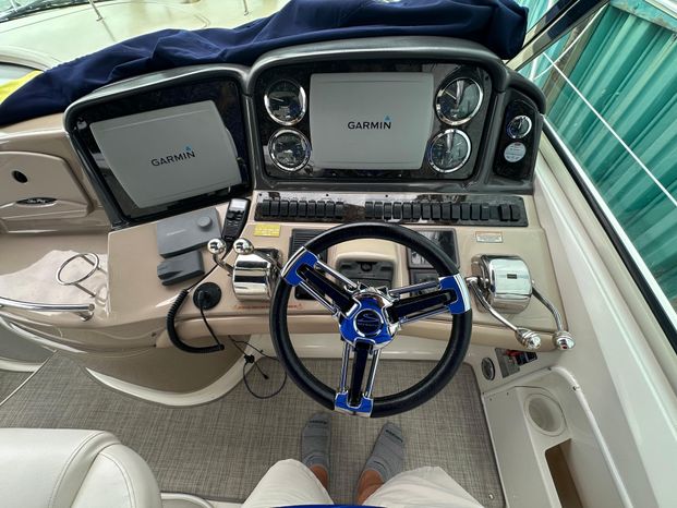 This vessel features Twin Cummins 6CTA 8.3 450-hp Diesel Engine's with approx. 1180 hours. Notable features include but are not limited to the following: Air-Conditioning & Heat (2-Units), (2) Head's (Vacuflush) w/Vanity/Sink/Shower (Note Stall-Shower Forward), Central Vacuum System, Windlass Anchor (w/Freshwater Washdown), Onan Generator, Electronics Package includes Garmin VHF Marine Radio, Dual Garmin 5212 w/GPS/Chartplotter, and Radar, Cockpit Wet Bar w/Sink/Refrigerator, Premium Fusion Sound System w/ JL Audio Speakers and Subwoofer, Above Windshield Isin Glass with Slant back Canvas, Removable Seagrass Cockpit Carpeting, and MUCH more!
