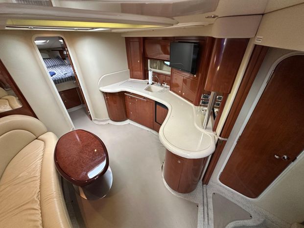 This vessel features Twin Cummins 6CTA 8.3 450-hp Diesel Engine's with approx. 1180 hours. Notable features include but are not limited to the following: Air-Conditioning & Heat (2-Units), (2) Head's (Vacuflush) w/Vanity/Sink/Shower (Note Stall-Shower Forward), Central Vacuum System, Windlass Anchor (w/Freshwater Washdown), Onan Generator, Electronics Package includes Garmin VHF Marine Radio, Dual Garmin 5212 w/GPS/Chartplotter, and Radar, Cockpit Wet Bar w/Sink/Refrigerator, Premium Fusion Sound System w/ JL Audio Speakers and Subwoofer, Above Windshield Isin Glass with Slant back Canvas, Removable Seagrass Cockpit Carpeting, and MUCH more!